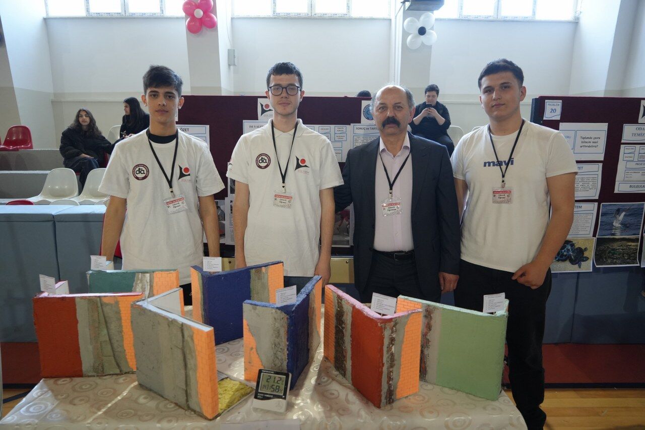 Lise öğrencileri Ali Eren Beytekin, Mustafa Saraçoğlu, Yiğit Can Güneş ve Mustafa Emir Demirci, danışman öğretmenleri Zekai Işıkdemir rehberliğinde yürüttükleri projede; ekonomik değerini yitirmiş koyun yünü, keçi kılı ve çam ağacı yaprağını çimento esaslı ya da su bazlı bağlayıcılarla karıştırarak levha formunda yalıtım malzemesi haline getirdi.