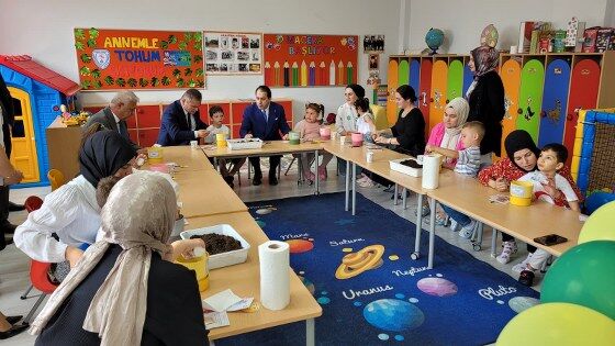 Anasınıfı öğretmeni Merve Ergüden ise öğrencilerin anneleriyle birlikte ilk gün heyecanını yaşadığını belirterek, "Tamamen adapte oldukları ilk günde onları velilerimle beraber karşıladım. Bugün veliler ve öğrencilerimle ilk anne çocuk etkinliğimizi gerçekleştirdik. Hep birlikte onlarla tohum ekme etkinliği yaptık. Yeşil vatanı koruma ve aile yılı olduğu için ilk aile yılı etkinliğimizi gerçekleştirdik. Çocuklarım da çok mutlu oldu velilerim de çok mutlu oldular." ifadelerini kullandı.