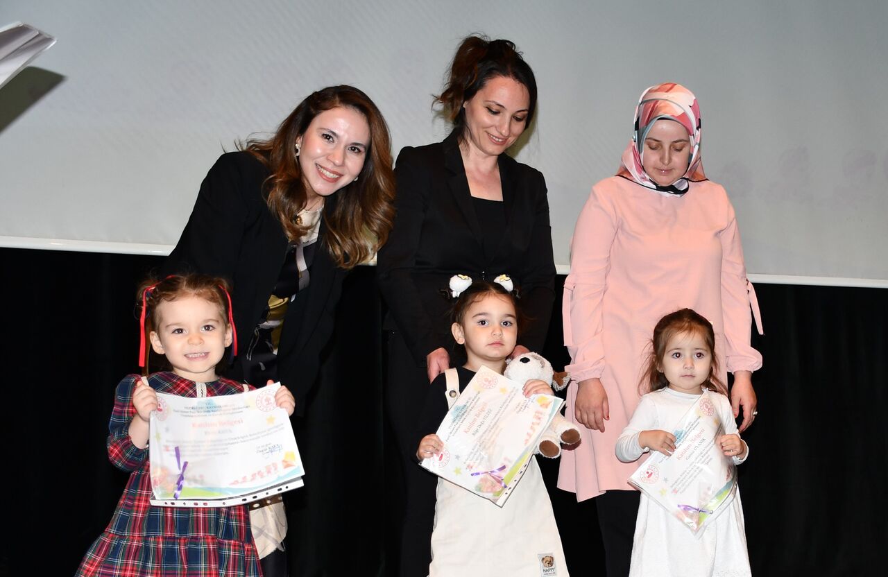 Konuşmanın ardından programda eğitimlere katılan bebeklerin duygu ile düşüncelerini ifade ettikleri ve eğitim süreçlerini gösteren video gösterimi gerçekleştirildi. Program, eğitimlerini tamamlayan 54 bebeğin sertifikalarını protokol üyelerinin elinden almasından sonra çekilen hatıra fotoğrafıyla sona erdi.