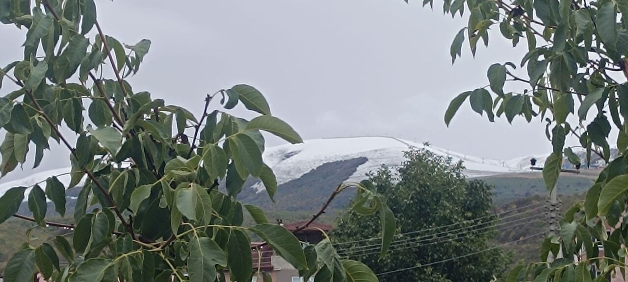 Sabahın ilk ışıklarıyla birlikte Akdağ’ın zirveleri beyaza bürünürken, kar kalınlığı yer yer birkaç santimetreye ulaştı.