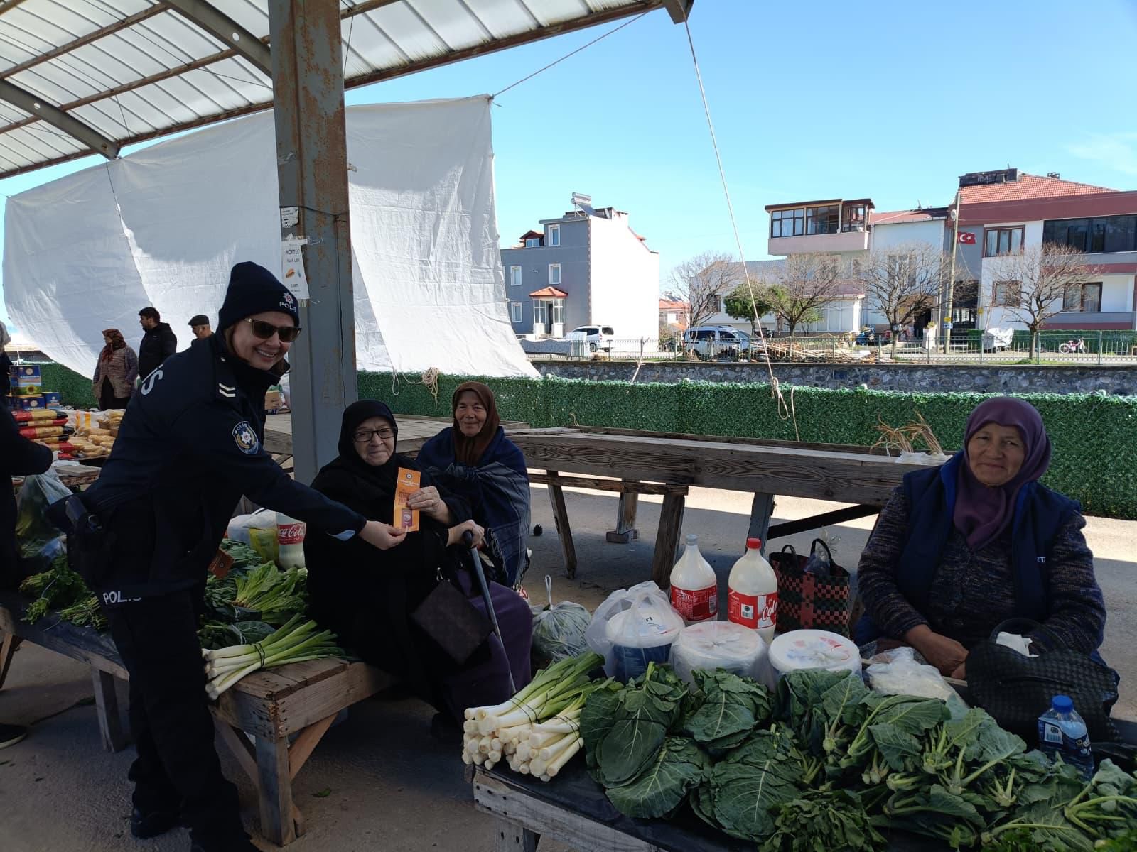 Yakakent İlçe Emniyet Amirliği Aile İçi ve Kadına Karşı Şiddetle Mücadele Büro Amirliği ekipleri tarafından pazar yerinde vatandaşlara yönelik bilgilendirme etkinliği düzenlendi. Çalışma kapsamında Kadın Destek Uygulaması (KADES) hakkında detaylı sunum yapıldı.