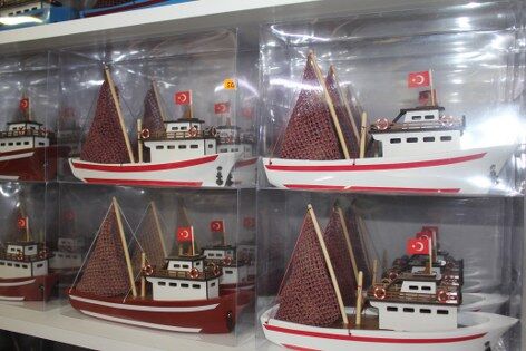 Bayraktar'ın atölyesinde, boyutuna ve detayına göre yapımı iki gün ile bir ay arasında değişen 8-10 çeşit balıkçı takası ve taraftar temalı tekne modeli bulunuyor. Her geminin yapım süreci farklı bir emek gerektiriyor. Ürünlerini toptan vermenin yanı sıra, dükkânında perakende olarak satışa sunuyor.