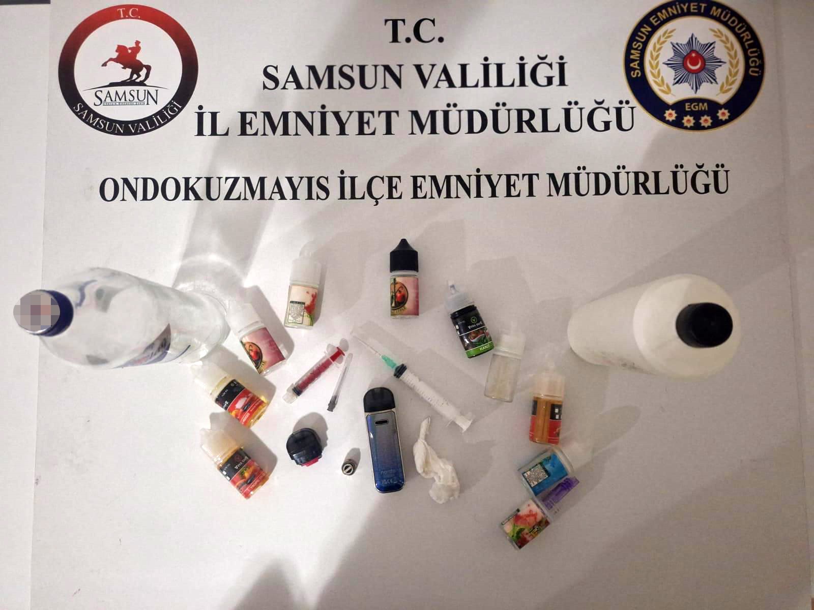 Olayın ardından şüpheli R.Ç.'ye ait ikamette yapılan aramada, 1 adet 9 mm çapında tabanca, 1 adet şarjör, 7 adet 9 mm fişek ile 5607 sayılı Kanun kapsamında 1 adet elektronik sigara, 10 adet likit, 2 adet şişe tiner ve şırınga ele geçirildi.