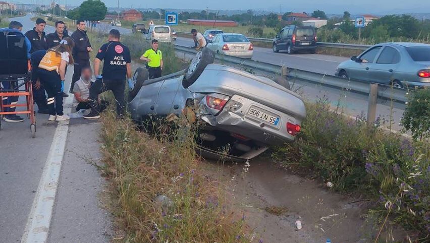 Samsun-Sinop kara yolu Çetinkaya Mahallesi'nde S.D'nin (28) kullandığı 55 NT 906 plakalı otomobil orta refüje devrildi.