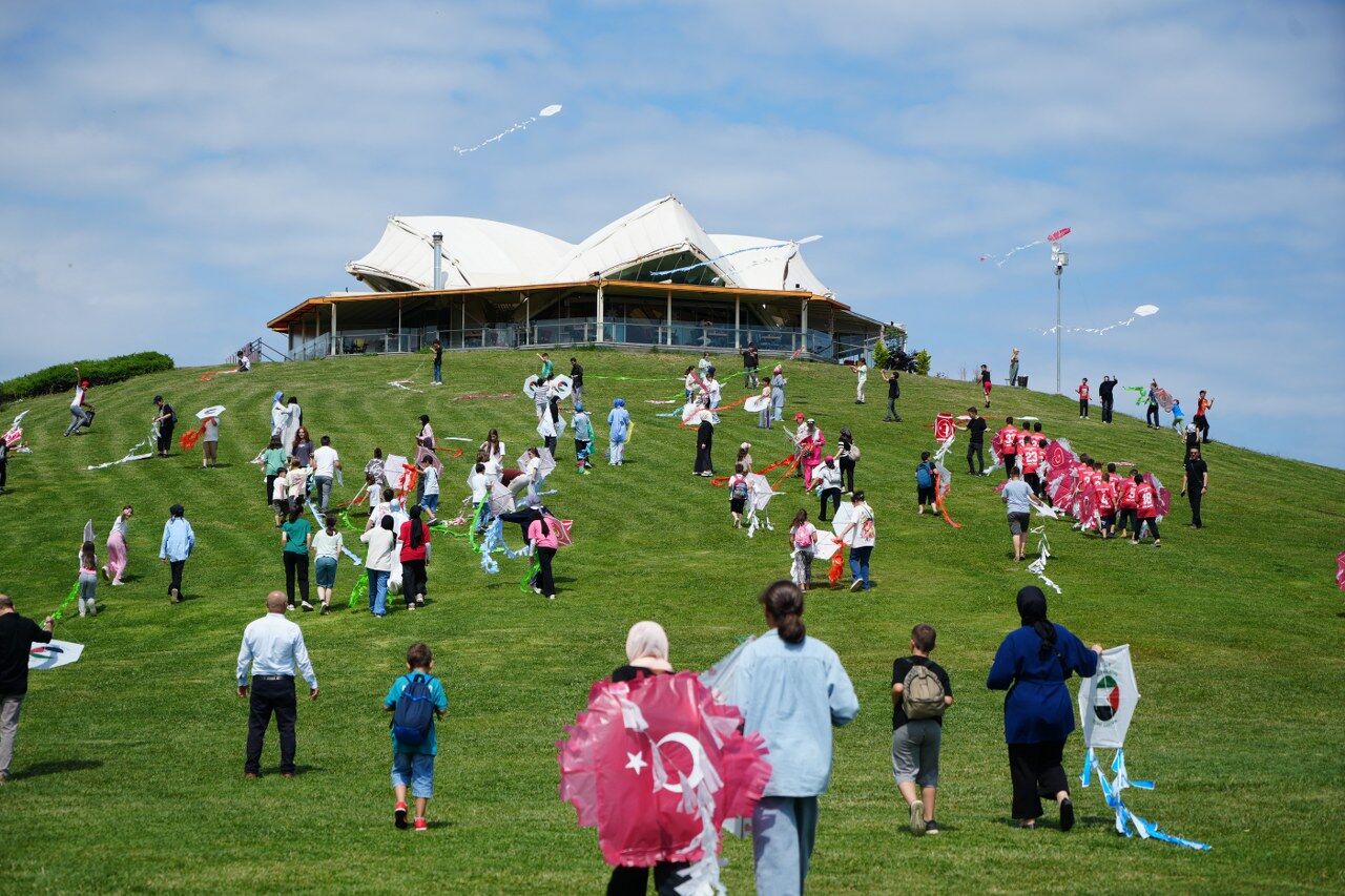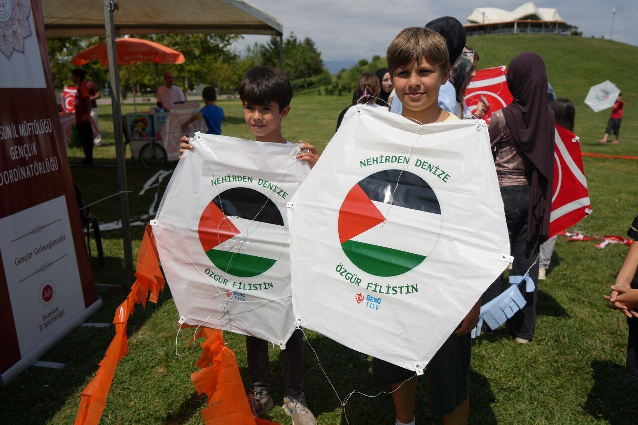 Batıpark etkinlik alanında düzenlenen etkinliğe ortaokul öğrencileri, aileleri, öğretmenler ve vatandaşlar büyük ilgi gösterdi. Samsun İl Müftülüğü'nün koordinasyonunda, Türkiye Diyanet Vakfı ve gençlik gönüllülerinin destekleriyle düzenlenen programda, çocuklar ellerindeki Filistin temalı uçurtmaları dualar eşliğinde gökyüzüne saldı.