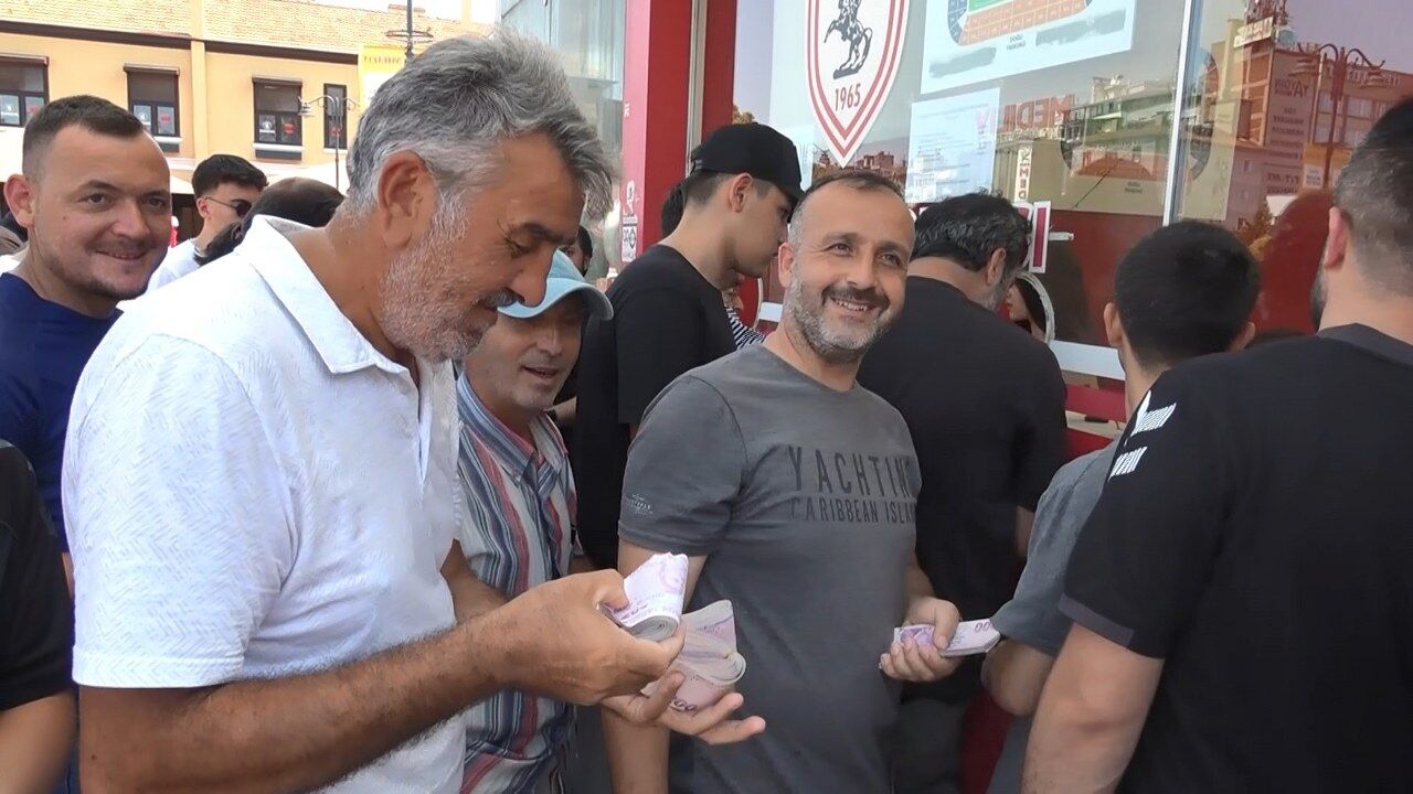 Duruma tepki gösteren taraftarlar, "Yıl 2025, düştüğümüz durumlara bakın. POS cihazı yok, bankadan nakit çekip geldik. Ne kadar iş bilmez varsa burada. Para saymayı bilen yok, makine yok. Bir tomar para ile burada bekliyoruz. Sevdamız Samsunspor uğruna düştüğümüz durumlar bu" ifadelerini kullandı.