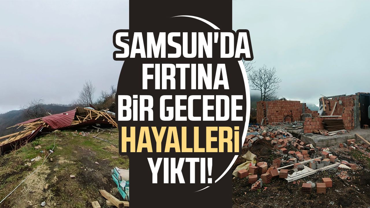 Samsun'un Salıpazarı ilçesinde etkili olan kuvvetli rüzgar nedeniyle Yenidoğan Mahallesi'nde Yüksel Şahin'e ait inşaat halindeki iki katlı evde hasar meydana geldi.