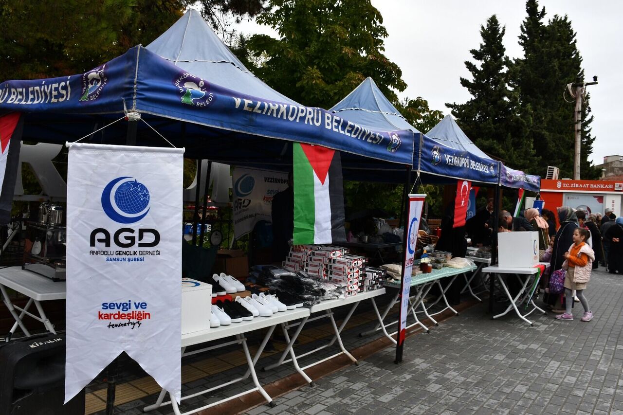 Köprülü Mehmet Paşa Parkı önünde kurulan çarşıda giyim eşyaları, hediyelik ürünler ve kadınların evlerinde hazırladığı çeşitli hamur işleri satışa sunuldu. Vatandaşlar, ürünlerden satın alarak Filistin halkına destek olma fırsatı buldu.