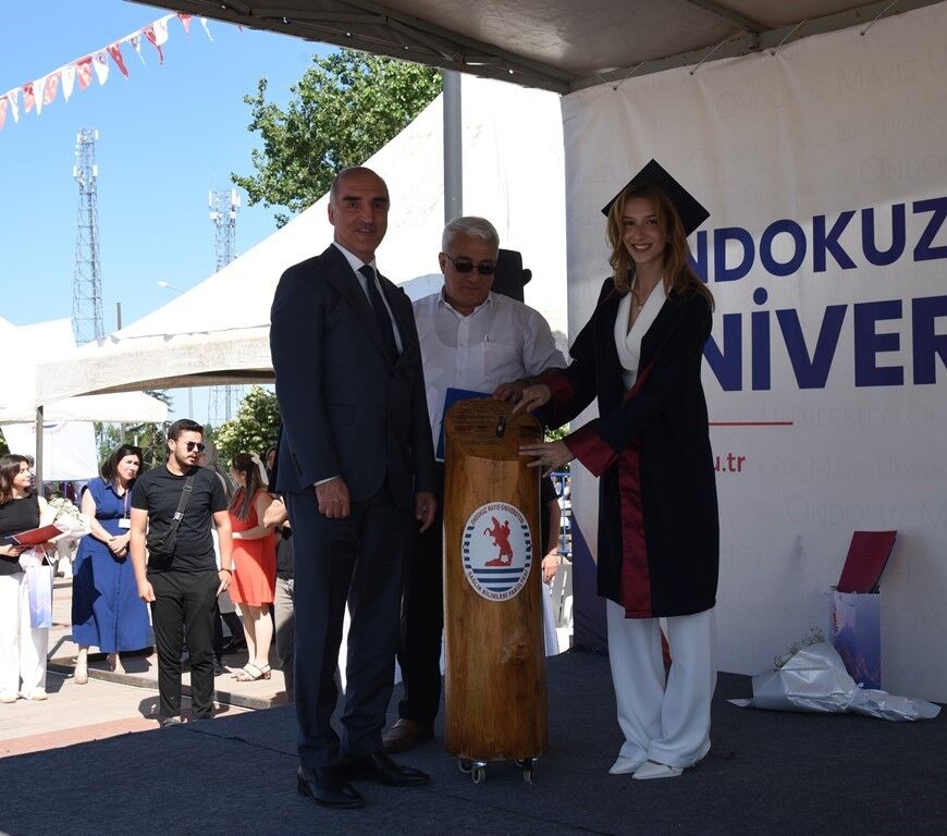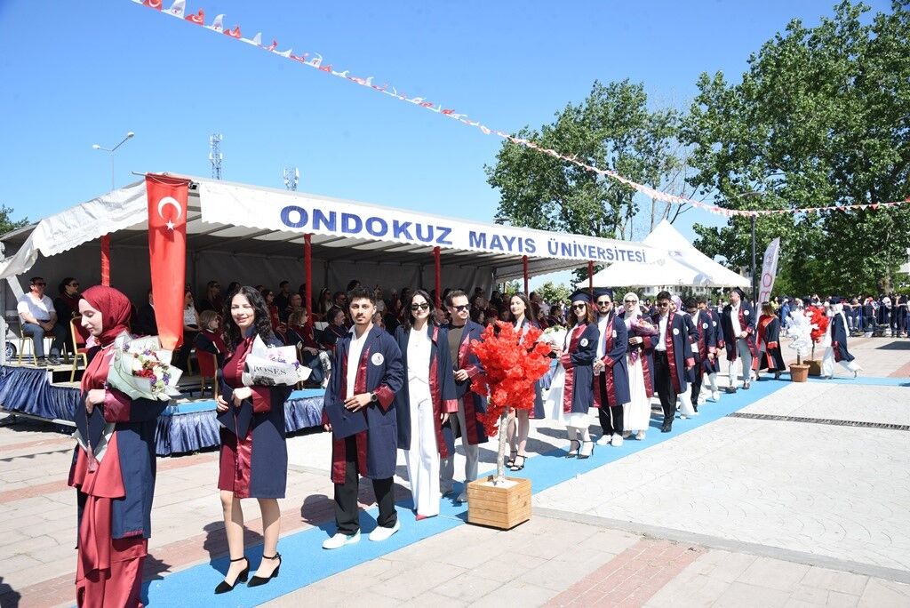 OMÜ Yaşam Merkezi’nde gerçekleşen mezuniyet töreni; Rektör Yardımcısı Prof. Dr. Alper Kesten, Genel Sekreter Erhan Burak Pancar, Sağlık Bilimleri Fakültesi Dekanı Prof. Dr. Esra Pancar Yüksel, Dekan Yardımcıları Doç. Dr. Gülcan Taşkıran Eskici, Doç. Dr. Mahmut Yaran, akademisyenler, mezun olan öğrenciler, mezun olan öğrencilerin aileleri ve davetlilerin katılımıyla gerçekleşti. OMÜ Sağlık Bilimleri Fakültesi’nin mezunlarının mesleğe adım attığı tören, saygı duruşu ve İstiklal Marşı'nın okunması ile başladı.
