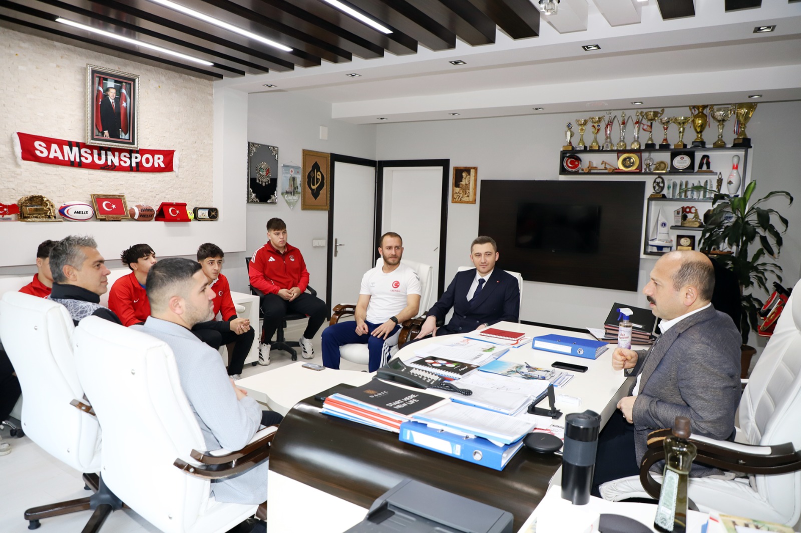 Tokat’ta düzenlenecek Okul Sporları Judo Grup Birinciliği öncesi Türkiye Olimpik Hazırlık Merkezi (TOHM) sporcuları, Samsun Gençlik ve Spor İl Müdürü Feyzullah Dereci’yi ziyaret etti. Yaklaşan müsabakalar öncesi moral depolayan genç judocular, hedeflerini ve hazırlık durumlarını Dereci’ye aktardı.
