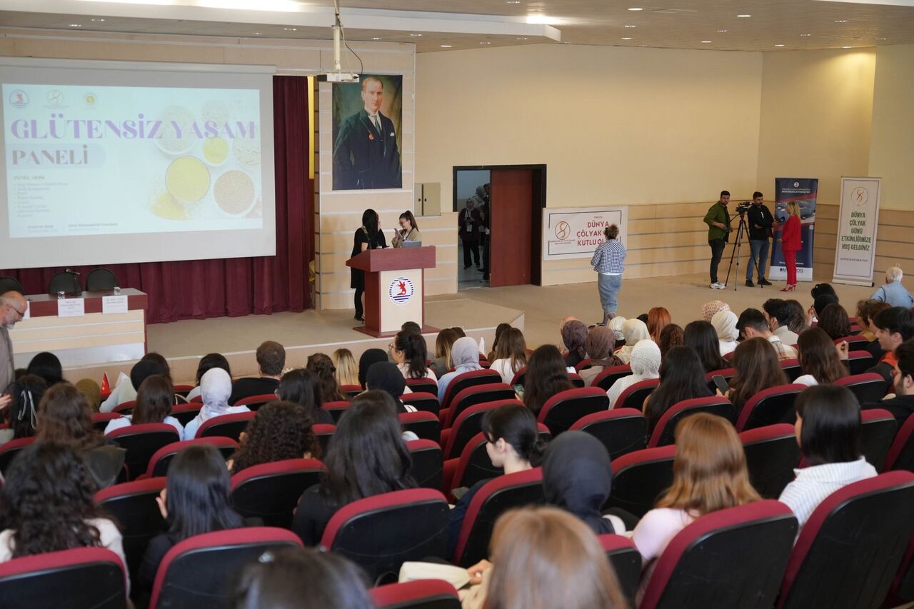 OMÜ Mühendislik Fakültesi Konferans Salonu'nda düzenlenen Glütensiz Yaşam Paneli'nde OMÜ Tıp Fakültesi Dahili Tıp Bilimleri Bölümü Dr. Öğretim Üyesi İbrahim Gören ‘Çölyak Tanı ve Tedavisi', Sağlık Bilimleri Fakültesi Beslenme ve Diyetetik Bölüm Başkanı Prof. Dr. Pınar Sökülmez Kaya ‘Çölyak ve Beslenme', Mühendislik Fakültesi Gıda Mühendisliği Bölümü Öğretim Üyesi Prof. Dr. Münir Anıl ‘Bilimsel Çalışmalar' konusunda sunumlar gerçekleştirdi. Glütensiz gıdaların da ikram edildiği panelde açıklamalarda bulunan Prof. Dr. Münir Anıl, çocukların da dikkatini çekecek cips, kek, baklaşekeri gibi ürünleri de glütensiz bir şekilde ürettiklerini söyledi.