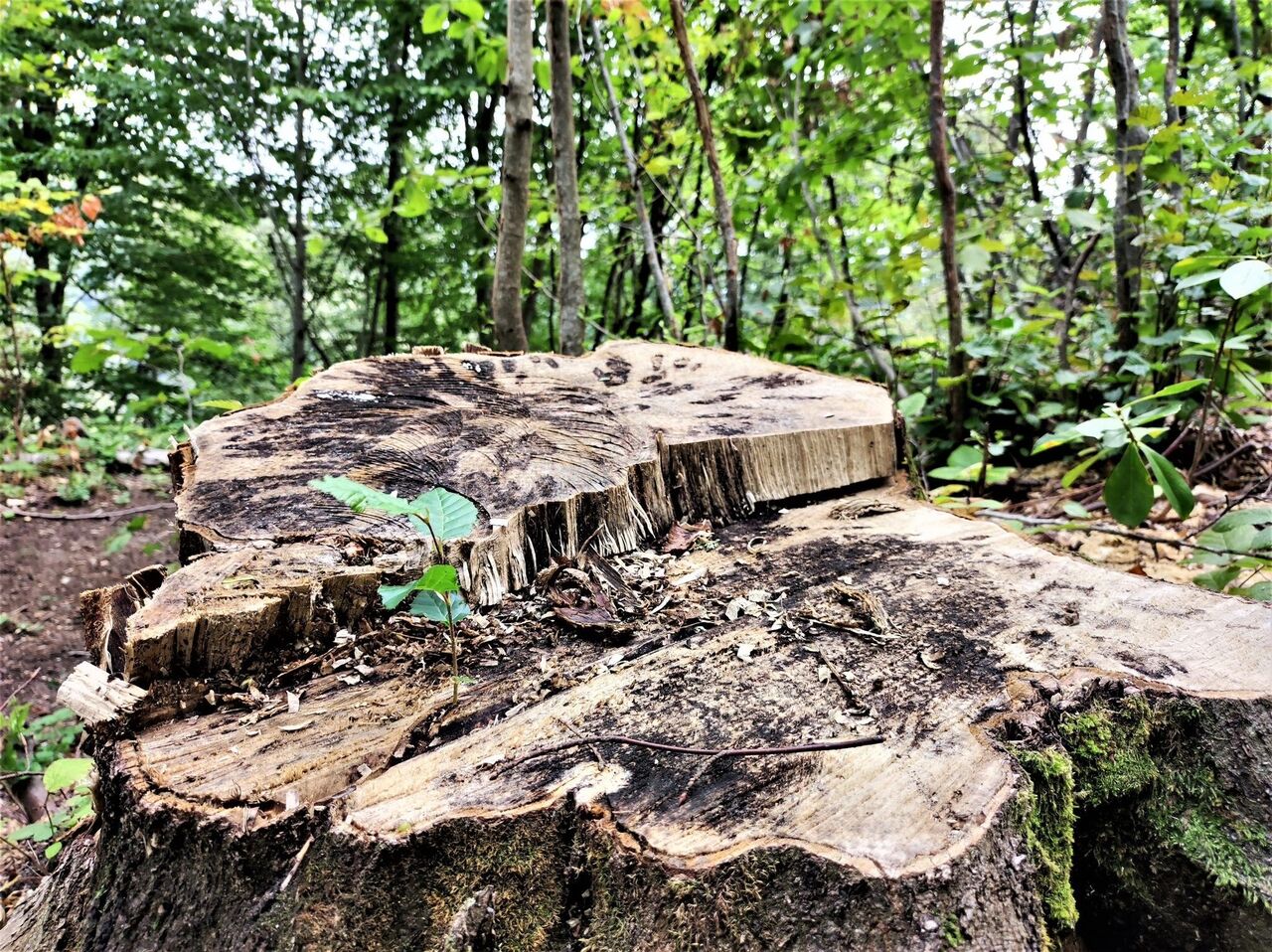 Samsun'da yaklaşık 100 yıllık kayın ağacının kütüğünden tohumun filizlenmesi görenleri şaşırtırken, fotoğraflarını Amasya Orman Bölge Müdürlüğü sosyal medyada paylaştı.