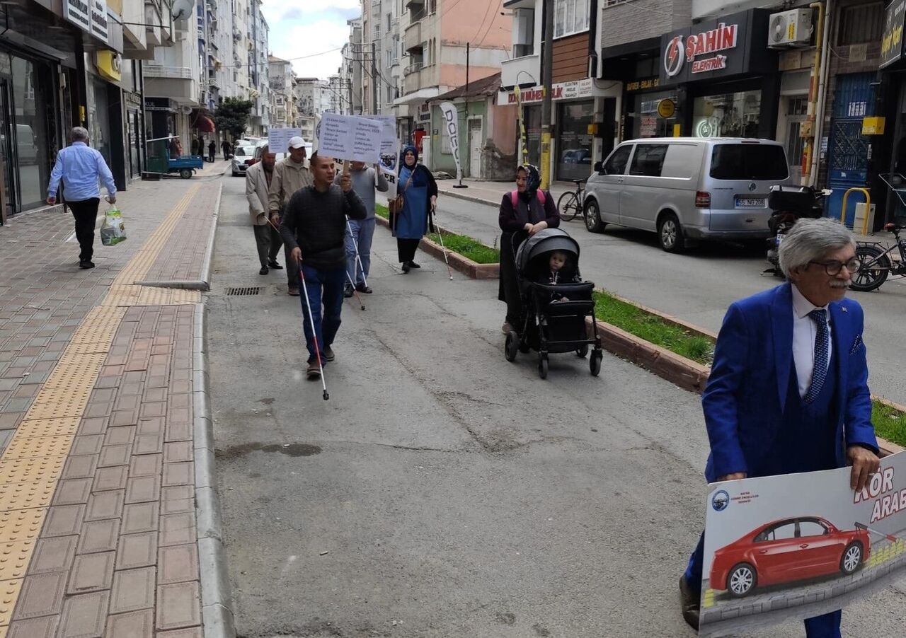 Ellerinde "Engelime Engel Olma, Yolumu İşgal Etme" yazılı pankartlar taşıyan görme engelli vatandaşlar, bu kez kaldırım yerine yolda yürümeyi tercih etti. Katılımcılar, kaldırımlarda bulunan sarı çizgilerin araçlar ve esnaflar tarafından işgal edilmesine tepki gösterdi.