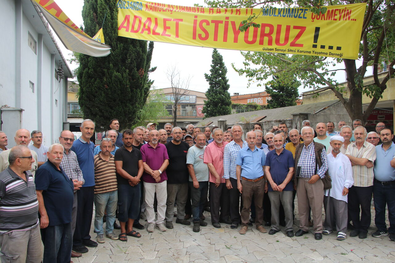 Yaşanan süreç ve gelinen son durum hakkında bilgi veren Gülsan Sanayi Sitesi Koruma ve Yaşatma Derneği Başkanı İbrahim Ülker, Gülsan Sanayi Sitesi 1983-1984 yılında faaliye geçti. Ondan sonraki süreçte 'ticaret alanına dönüşecek' diye bir plan notu var. Mimarlar Odasının açtığı dava için tespite geldiklerinde belediyenin avukatı plan notunu gizli tutuyor. 2005 yılında Yusuf Ziya Yılmaz döneminde bizim haberimiz olmadan bir proje yaptı. Ticaret alanını 5 adaya ayırdı. O dönemde de itirazlarımız oldu, görüşmeler devam etti. Anlamaşadık ip koptu. 2015 yılının aralık ayında yeşil alana çevrildi. Burada 15-20 bin kişinin devlete yük olmadan ekmek yediği yeri, yeşil alana çevirdiler. Buna itiraz ettik. Mahkeme süreci başladı. 71 dükkan mahkeme kararıyla istimlak edildi. Belediye, burada da babadan miras kalmış olan yerleri, kolay istimlak edilebilecek yerleri tercih etti. O sırada devam eden mahkeme sürecinde projenin iptal temyizde onanınca istimlaklar durdu. Dava açıp da dükkanlarını alan arkadaşlarımız oldu. 2021 yılının haziran ayında Mustafa Demir, kentsel dönüşüm kararı aldı. 2005'teki projenin adını değiştirip kararı geçirdi. Mimarlar Odası, kamu yarına uygun olmadığı gerekçesiyle planın iptali istemiyle dava açtı. Onlara teşekkür ediyoruz. Bir yandan da istimlak davaları açılmaya başlandı" dedi.