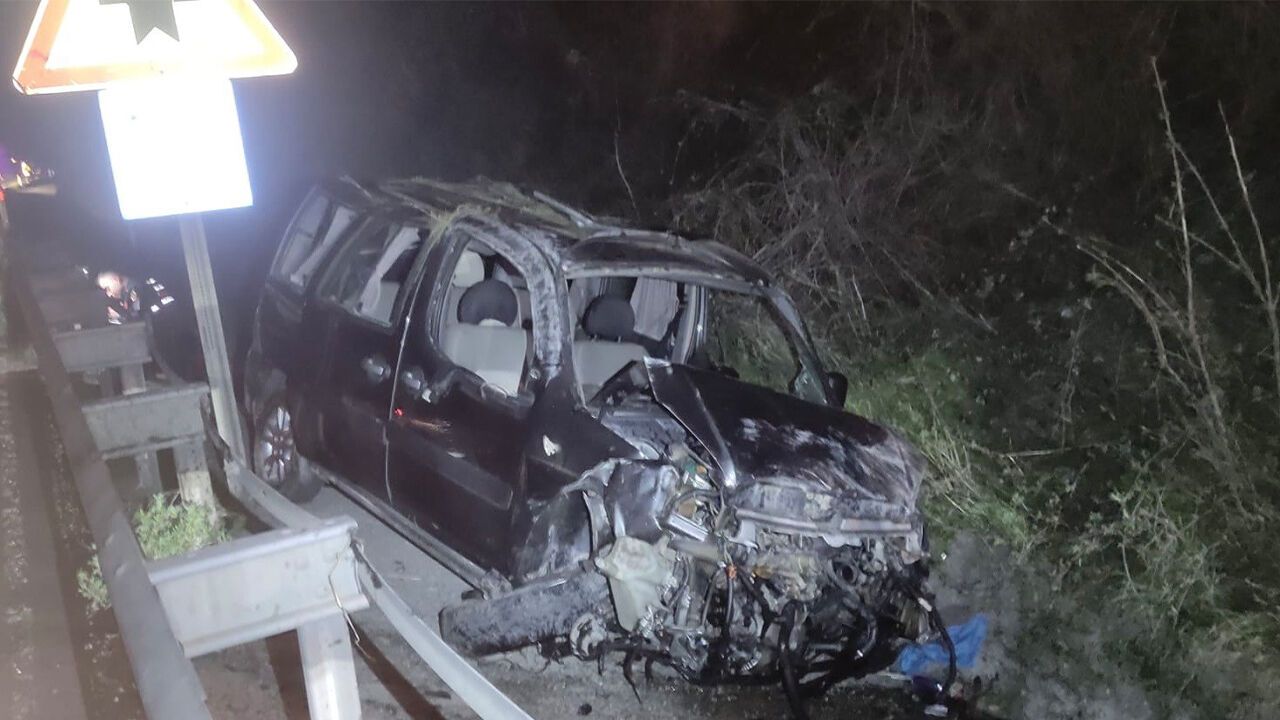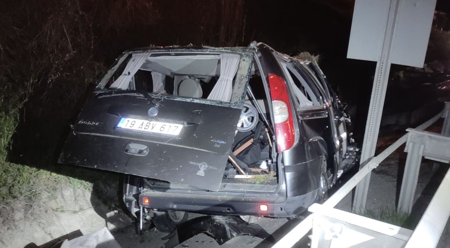 Sürücünün direksiyon hakimiyetini kaybetmesi sonucu araç yoldan çıkarak kaza yaptı. Çarpmanın etkisiyle araçta büyük hasar oluşurken, içeride bulunan 3 kişi ağır yaralandı.