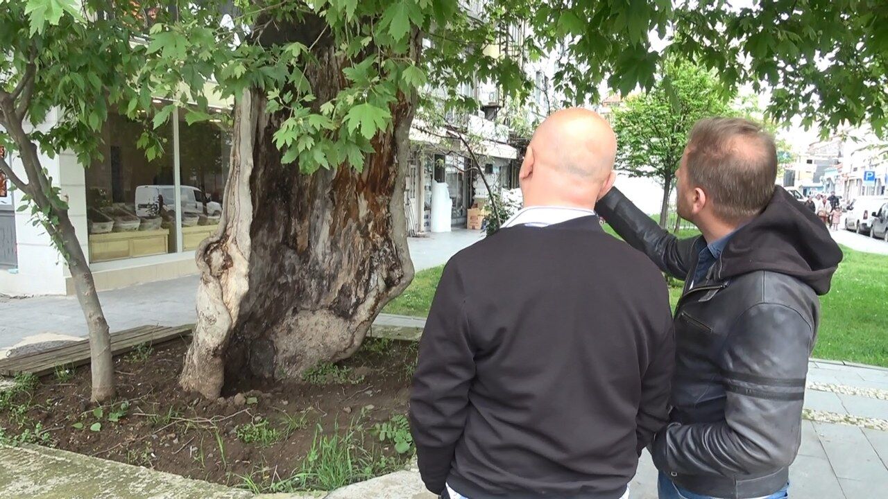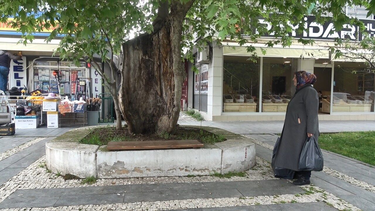Bülent Petek adlı vatandaş ise ağacın bir dönem çok görkemli olduğunu ifade ederek, "Yandıktan sonra bu halini aldı. Şimdi hasta bir ağaç. Yıkılma riski var ama Anıtlar Kurulu tarafından koruma altına alındı. Gerekli müdahale yapılırsa kurtarılabilir" diye konuştu. Asırlık ağacın eski yıllarda çok görkemli olduğunu ifade eden diğer çevre esnafı da gövdesi yanan çınarın yine de yeşil kalarak çevreye güzellik kattığını vurguladı.
