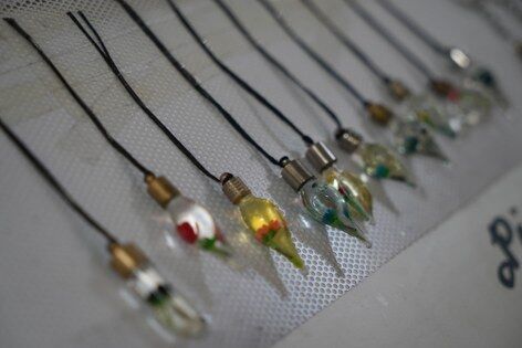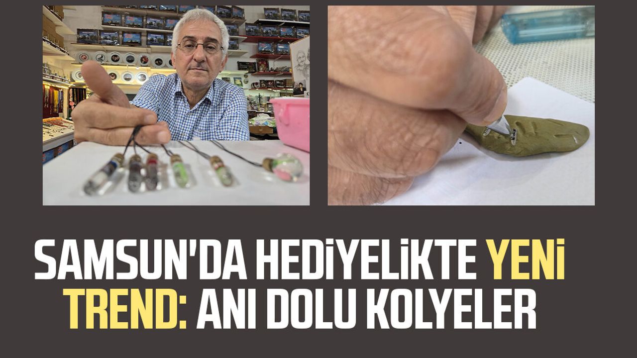 Samsun'da hediyelik eşya üreten 62 yaşındaki Temel Samangül, 30 yılı aşkın süredir hediyelik eşya üretip, satarak geçimini sağlıyor. Samsun Yabancılar Çarşısı esnafından Samangül, son dönemde kolyelerde yeni bir trend başladığını dile getirdi. Samangül, pirinç tanesi bulunan cam tüplü kolyelerin eskisi gibi rağbet görmediğini, vatandaşların şu anda daha çok fotoğraf, bebek dişi ve saç kullanılarak yapılan kolyelere ilgi gösterdiğini dile getirdi.