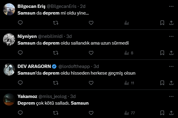 SAMSUN'DA HİSSEDİLEN DEPREM MEYDANA GELDİ