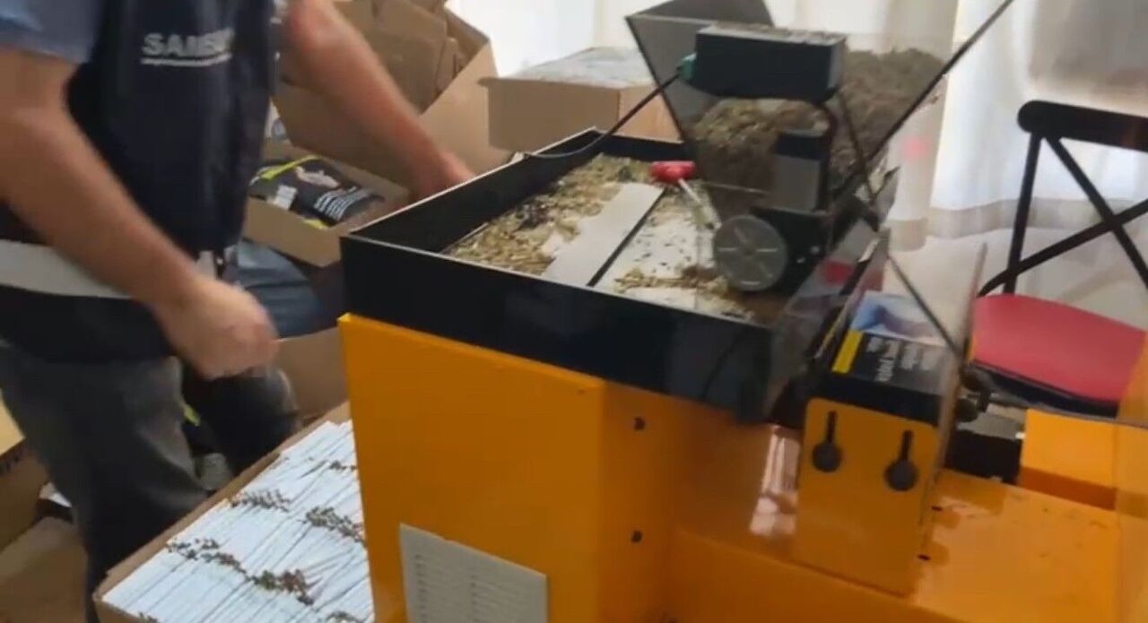 Adresteki aramada, 38 bin bandrolsüz doldurulmuş makaron, 10 bin boş makaron ile otomatik sigara sarma makinesi ele geçirildi.