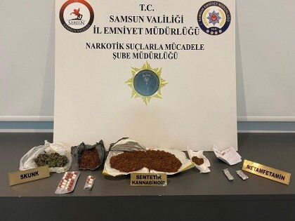 Narkotik ekipleri tarafından İlkadım ilçesinde Ö.Ö.'nün (39) ikametinde yapılan aramada ise 451 gram metamfetamin, 35 gram sentetik kannabinoid hammaddesi, 9,34 gram esrar ve 0,24 gram kokain ele geçirildi. Gözaltına alınan şüpheli bugün Samsun Adliyesi'ne sevk edildi.