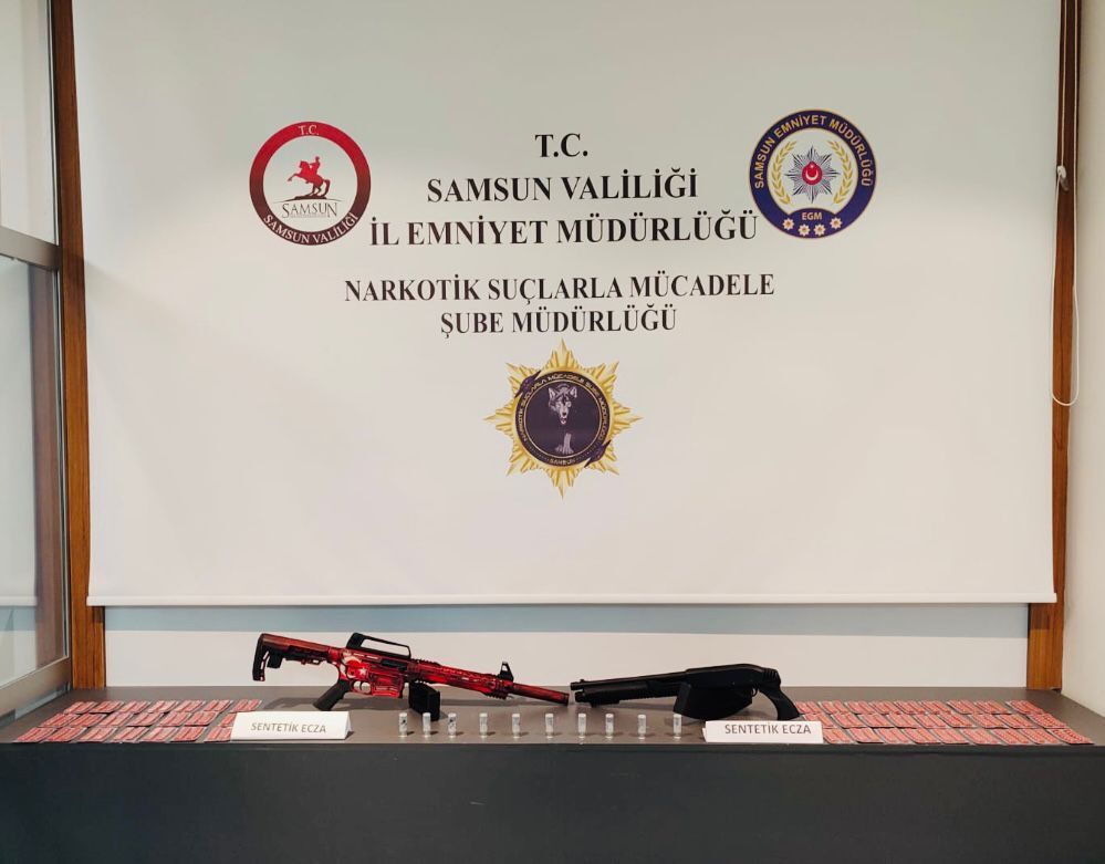 Yapılan aramalarda; 5 bin 610 adet sentetik ecza, 200 gram pregabalin etken madde, 29,10 gram metamfetamin, 1.000 adet içi boş kapsül, 2 adet uyuşturucu kullanım aparatı, 3 adet ruhsatsız tüfek, 12 adet tüfek kartuşu ele geçirildi.
