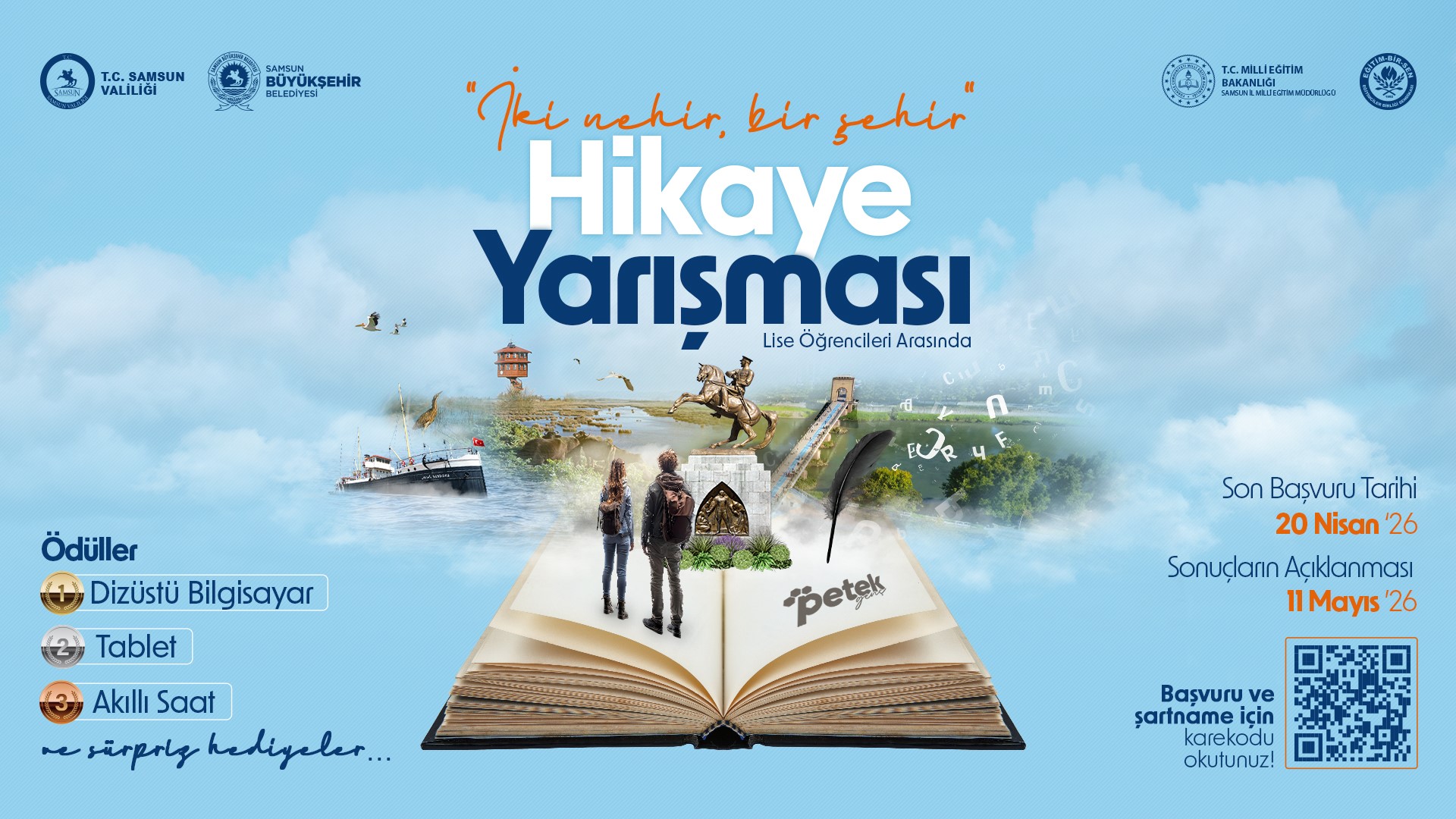 Samsun Büyükşehir Belediyesi, Samsun Valiliği, Samsun İl Milli Eğitim Müdürlüğü ve Eğitim-Bir-Sen iş birliğiyle lise öğrencilerine yönelik düzenlenen "İki Nehir Bir Şehir" hikâye yarışmasının başvuruları başladı. 20 Nisan 2026 tarihine kadar devam edecek yarışmaya Samsun il sınırları içinde öğrenim gören tüm lise öğrencileri katılabilecek ve her öğrenci yalnızca bir hikâye ile başvuruda bulunabilecek.