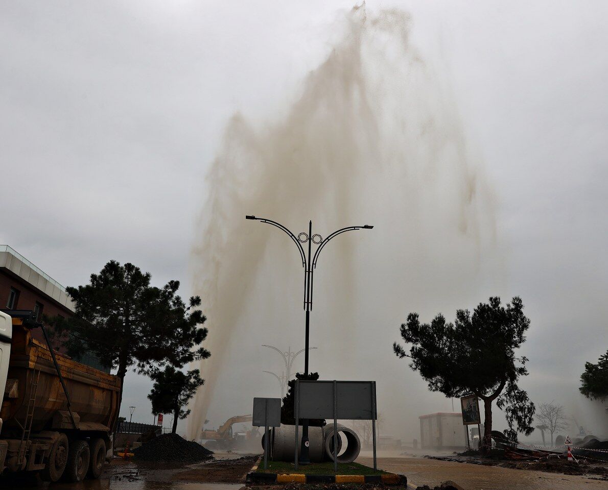 Samsun'u İlkadım ilçesi Hançerli Mahallesi Sahil Caddesi'ndeki içme suyu isale hattı, çalışma sırasında patladı.