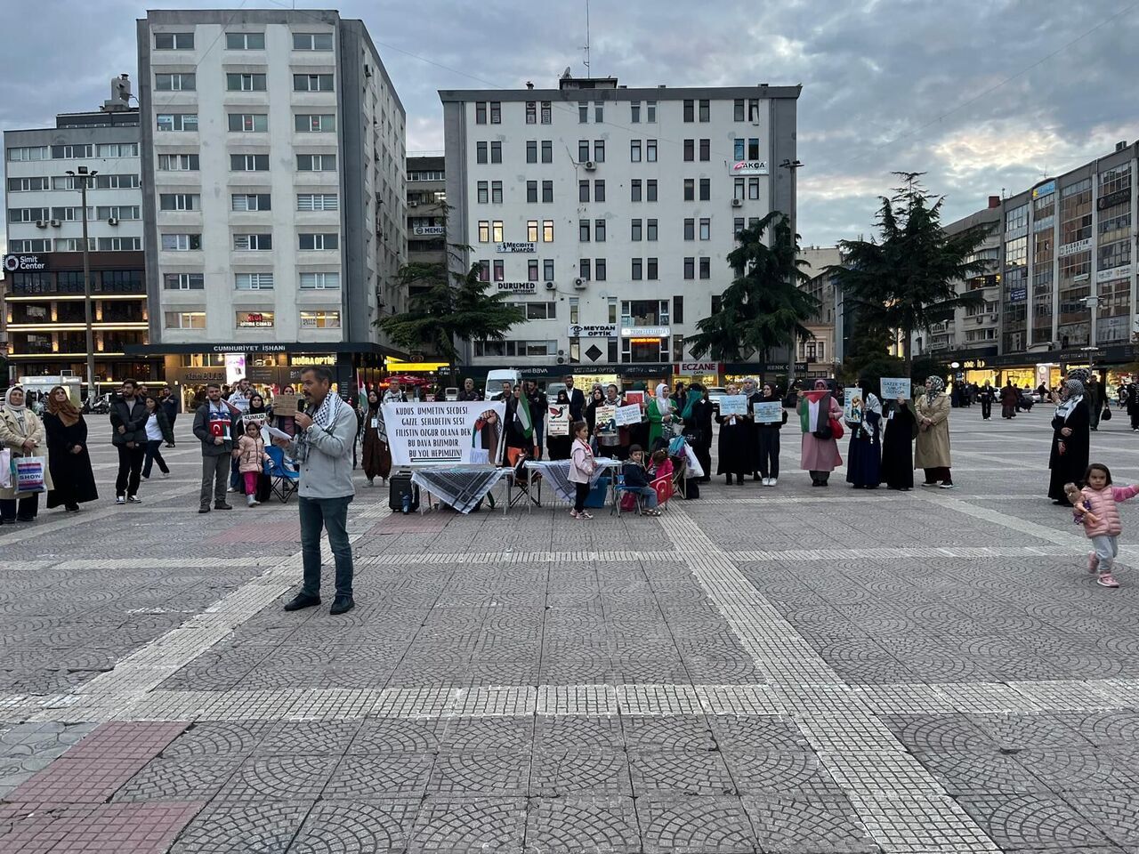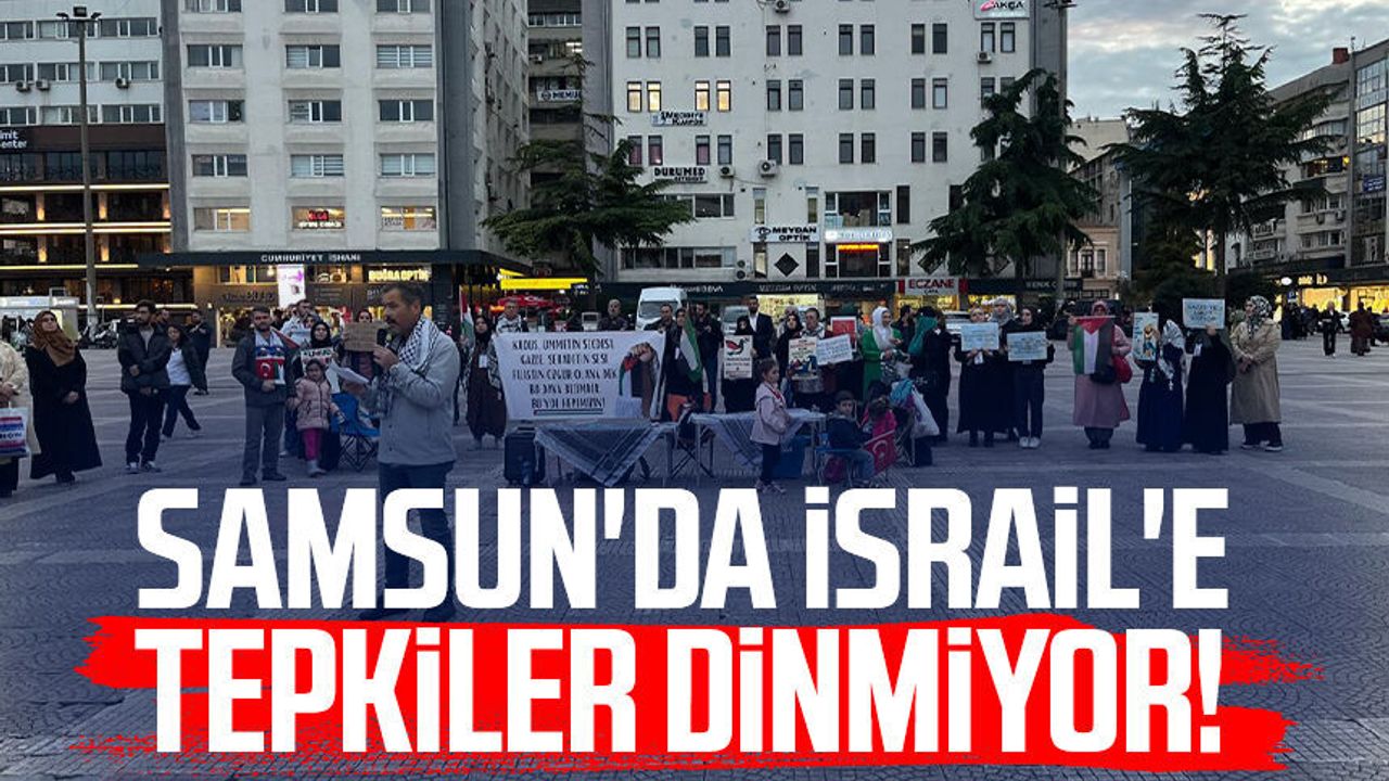 Samsun Cumhuriyet Meydanı’nda bir araya gelen vatandaşlar, İsrail’in Filistin’e yönelik saldırılarını protesto etti.