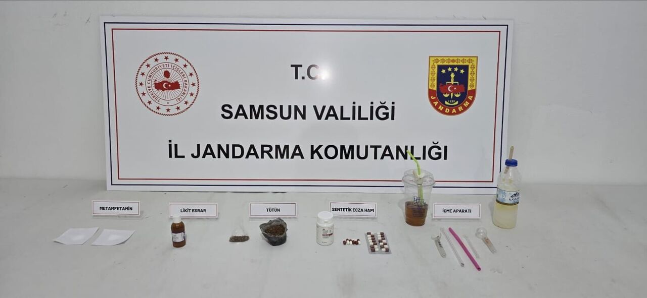 Narkotik Şube Müdürlükleri ve İlçe Jandarma Komutanlığı ekiplerinin katılımıyla gerçekleştirilen aramada; 78 adet sentetik ecza hapı, 20 gram bonzai, 3 gram metamfetamin, 50 ml sıvı esrar, 5 adet uyuşturucu kullanma aparatı ele geçirildi.