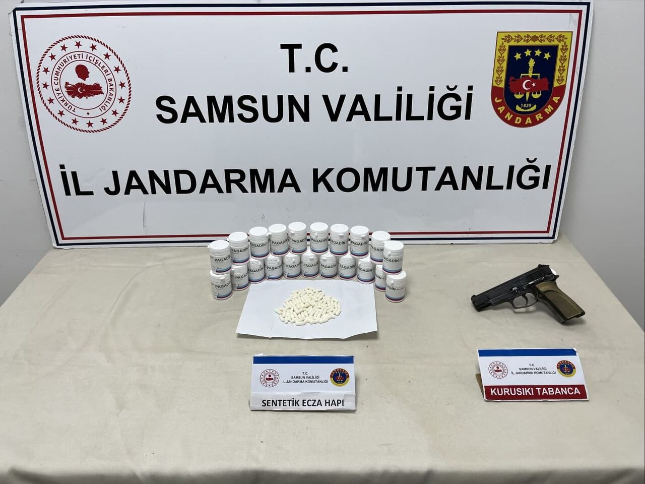 Samsun İl Jandarma Komutanlığı Narkotik Suçlarla Mücadele Şube Müdürlüğü, İstihbarat Şube Müdürlüğü ve İlkadım İlçe Jandarma Komutanlığı ekiplerince şüphelinin ikametinde yapılan aramada bin 317 adet sentetik ecza hapı ile 1 adet ruhsatsız kuru sıkı tabanca ele geçirildi.