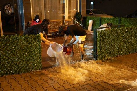 Bodrum katlarda bulunan daireler ve iş yerleri, su baskınlarıyla karşı karşıya kaldı. Ev sahipleri ve esnaf, kendi imkanlarıyla suları tahliye etmeye çalıştı.