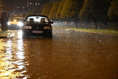 Samsun'da saat 19.00 sıralarında başlayan kuvvetli sağanak yağış, kısa sürede etkisini artırdı. Atakum ilçesinde cadde ve sokaklar dere olup aktı. Araçlar trafikte güçlükle ilerlerken, bazı noktalarda trafik tamamen durma noktasına geldi. Sürücüler, geri dönmek veya alternatif yollar bulmak için çaba sarf etti. Yayalar ise su birikintileri nedeniyle zor anlar yaşadı. Tramvay seferleri de durdu, vatandaşlar istasyonlarda uzun süre beklemek zorunda kaldı. Arıza yapan bir tramvay da hatta mahsur kaldı.