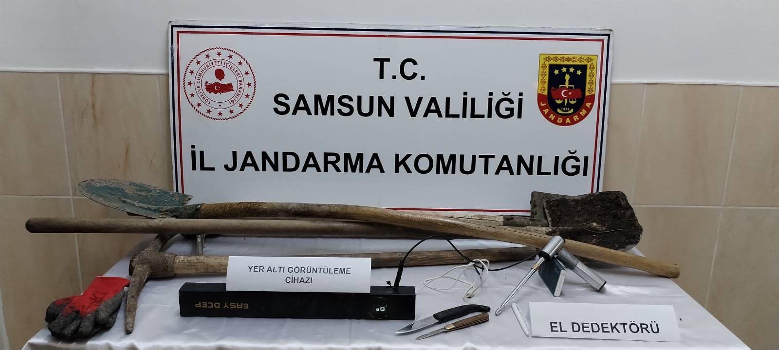 Alaçam İlçe Jandarma Komutanlığı ekipleri, izinsiz kazı yapıldığı ihbarı üzerine çalışma yürüttü.