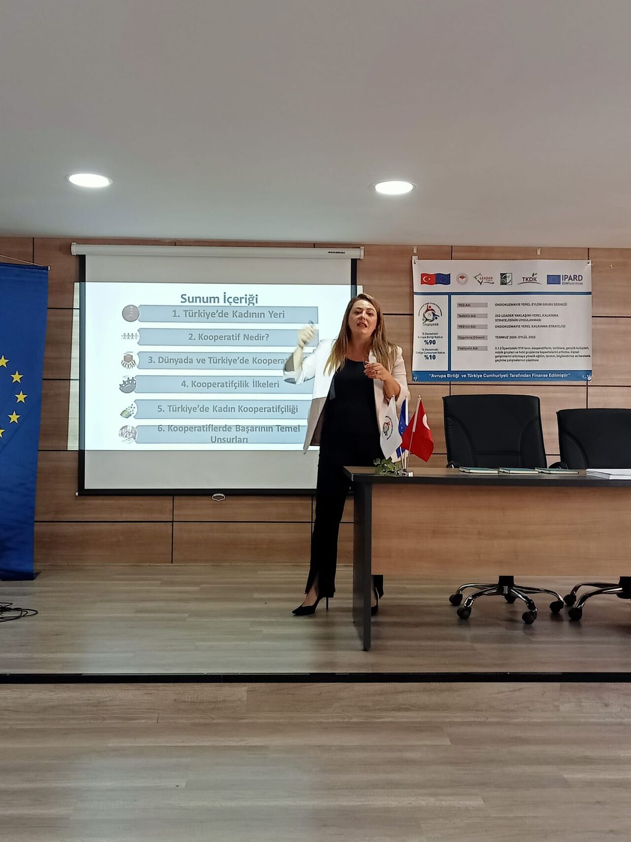Eğitimde Engiz Kadın Kooperatifi üyeleri ve ilçedeki potansiyel girişimcilere kooperatifleşmenin önemi, iyi uygulama örnekleri, satış stratejileri gibi konularda bilgilendirme yapıldı.