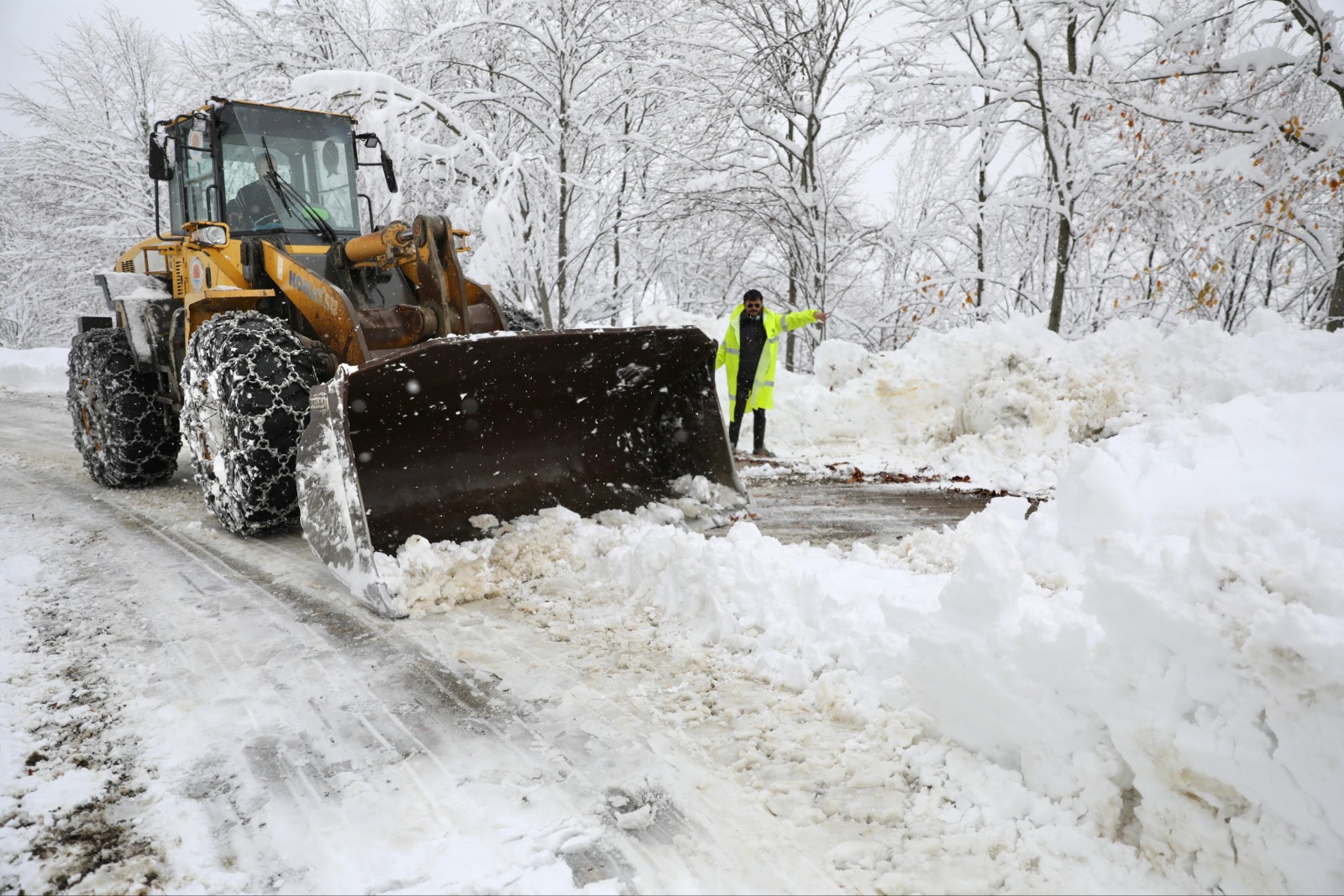 - On üç ilçede yoğun mesaiyle kapanan yollar kısa sürede açıldı.