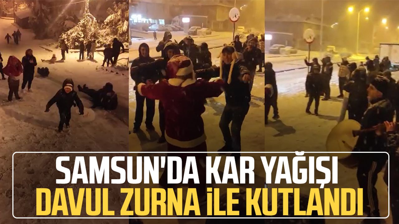 SAMSUN'DA KAR YAĞIŞINI DAVUL ZURNAYLA KUTLADILAR