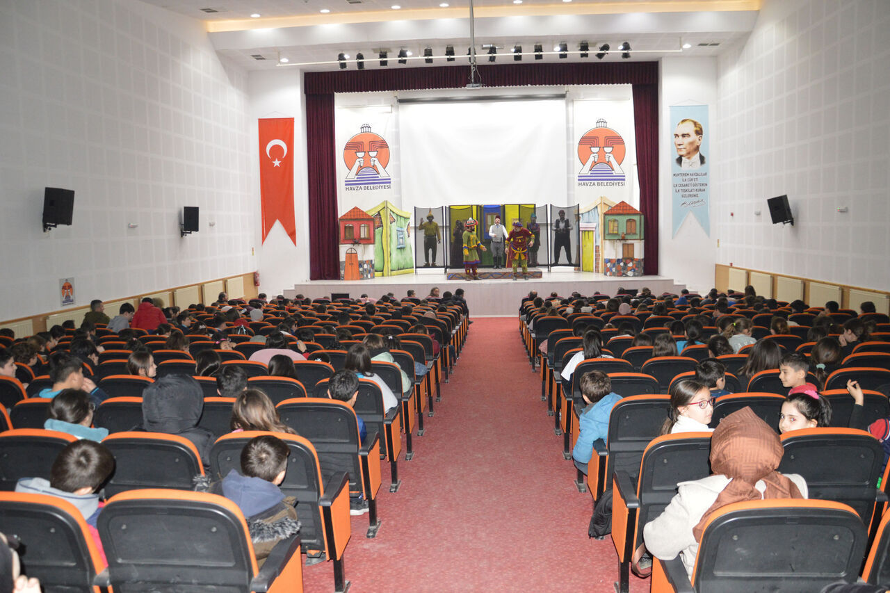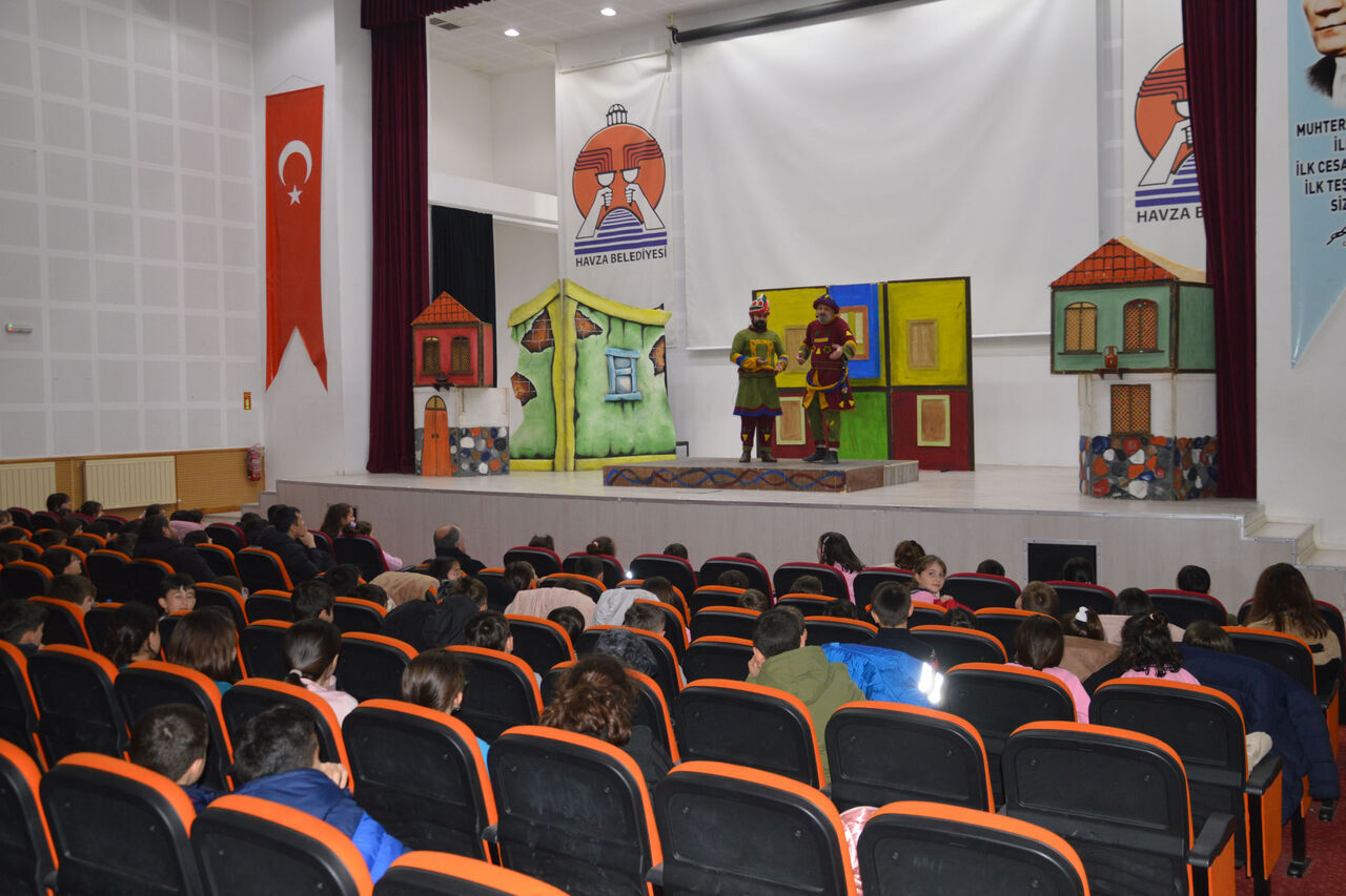 Samsun Büyükşehir Belediyesi ile İl Milli Eğitim Müdürlüğü iş birliğinde hayata geçirilen proje kapsamında Samsun'un ilçelerinde sahnelenen "Karagöz Müze Bekçisi" tiyatrosu, Havza Belediyesi Kültür Merkezi'nde minik sanatseverlerle buluşturuldu.
