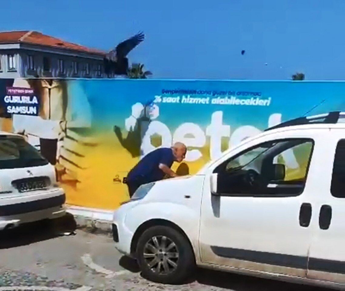 Karga saldırısı çevredeki vatandaşların şaşkın bakışları arasında gerçekleşirken, yaşananlar cep telefonu kamerasıyla kayda alındı. Bayram Asma'nın olayı yara almadan atlatması ise teselli kaynağı oldu.
