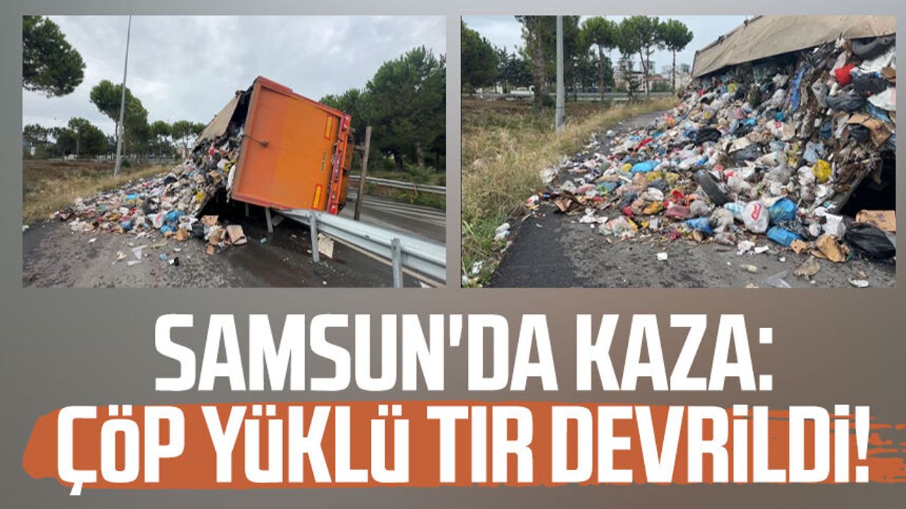 SAMSUN'DA ÇÖP YÜKLÜ TIR DEVRİLDİ