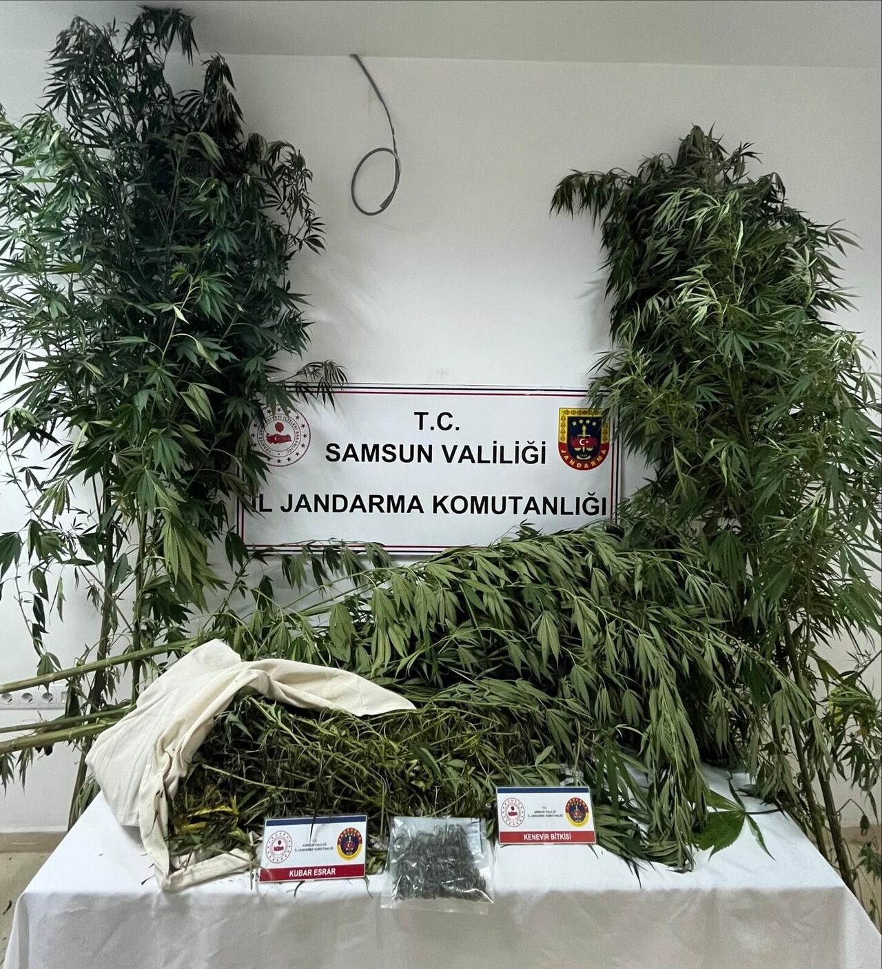 Salıpazarı İlçe Jandarma Komutanlığı ekiplerince şüphelinin ikametinde yapılan aramada 9 kök kenevir bitkisi ve 1.354 gram kubar esrar ele geçirildi.