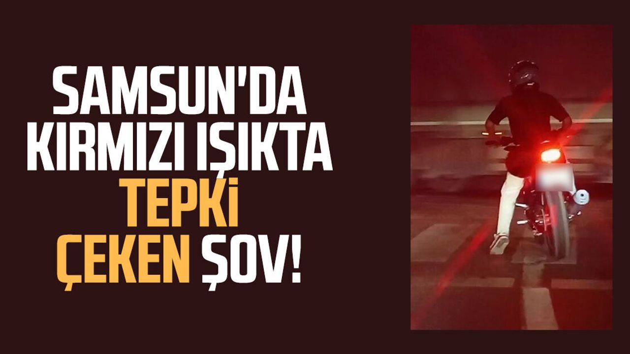 Samsun'un Canik ilçesi Belediyeevleri Kavşağı Atatürk Bulvarı üzerindeki trafik ışıklarında meydana gelen olayda kırmızı ışıkta bekleyen motosiklet sürücüsü, yeşil ışığın yanmasıyla birlikte gazı sonuna kadar açarak patinaj yaptı.