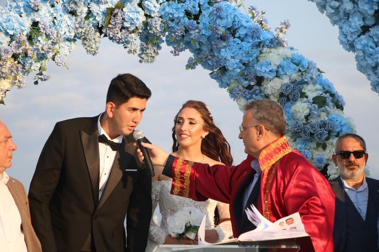 Samsun Yelken Kulübü'nde gerçekleşen törende genç çiftin nikahını İlkadım Belediye Başkanı İhsan Kurnaz kıydı. Gelinin sağdıçlığını Melis Kol'un ağabeyi İbn-i Haldun Üniversitesi Öğretim Görevlisi Hukukçu Av. Yağızhan Kol, nikah şahitliklerini ise, iş insanı ve eski Doğru Yol Partisi İl Başkanı Fevzi Reis, iş insanı Sedat Şahin, iş insanı Erol Beytekin, İYİ Parti Samsun İl Başkanı Hasan Aksoy, Samsun TSO Meclis Başkanı Haluk Akyüz, Yeşilyurt Demir Çelik Yönetim Kurulu Üyesi Fikret Yeşilyurt, YOL-İŞ Sendikası Samsun 2 Nolu Şube Başkanı İbrahim Uzun eski Atakum Belediye Başkanı Av. Cemil Deveci, eski İlkadım Belediye Başkanları Erdoğan Tok ve Necattin Demirtaş yaptı.