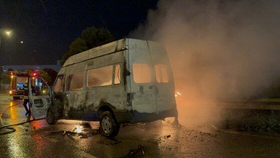 KIRAN MAHALLESİ'NDE MİNİBÜS YANGINI