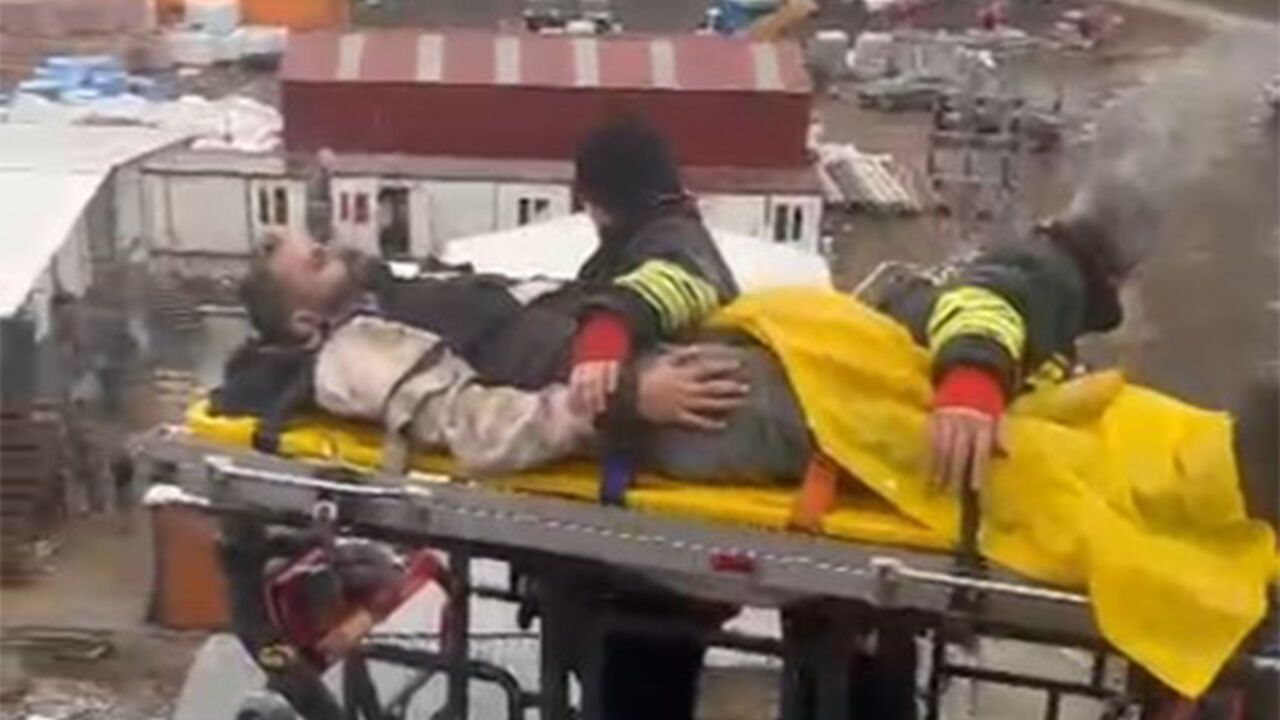 Bafra İtfaiye Grup Amirliği ekipleri, yaralı işçiyi bulunduğu kattan vinç yardımıyla güvenli şekilde aşağı indirdi.