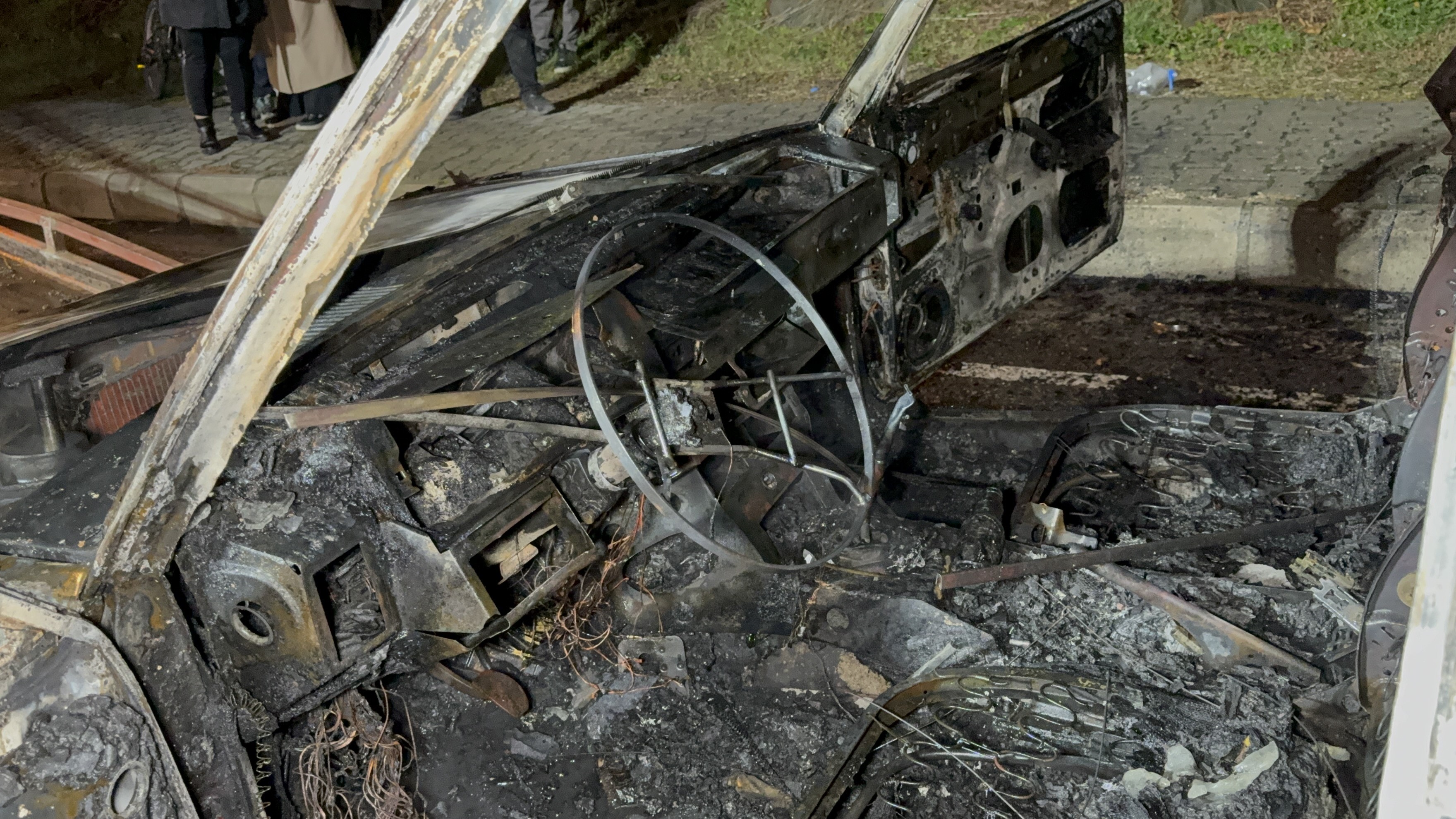 - İtfaiye ekipleri yangını söndürürken otomobil tamamen kullanılamaz hale geldi.