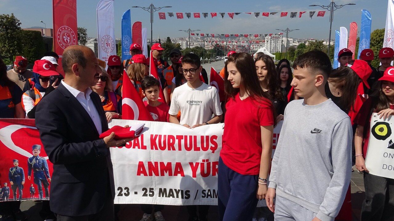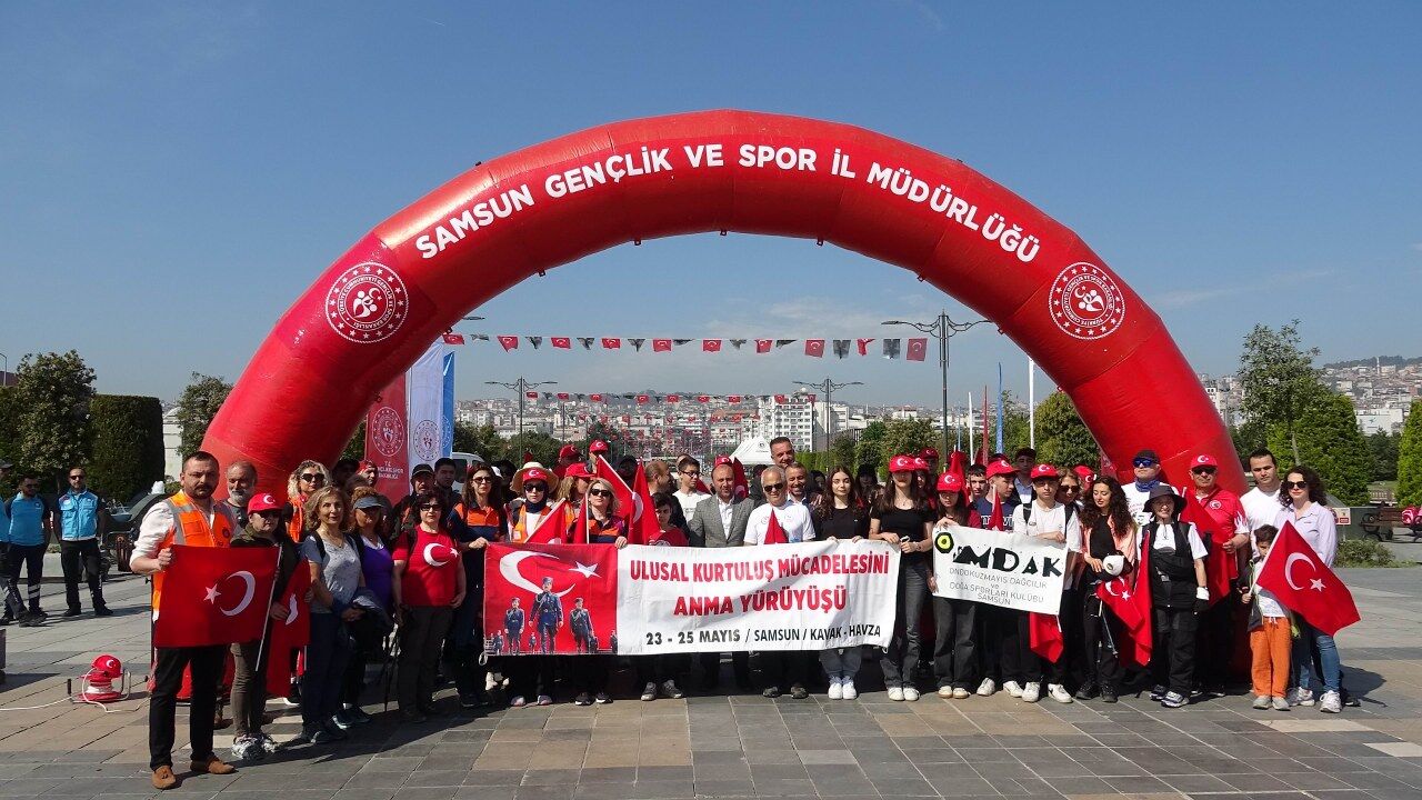 Samsun'da 19 Mayıs Atatürk’ü Anma, Gençlik ve Spor Bayramı etkinlikleri devam ediyor. 19 Mayıs etkinlikleri kapsamında organize edilen 15. Ulusal Kurtuluş Mücadelesi Anma Yürüyüşü, Tütün İskelesi’nde düzenlenen programla start aldı. Burada toplanan gençler, Havza ilçesine teslim edecekleri ay-yıldızlı Türk bayrağını Samsun Gençlik ve Spor Müdürü Feyzullah Dereci’den öperek teslim aldı. Yürüyüş, bayrak teslim töreninin ardından polis eskortu ve ambulans eşliğinde başladı.