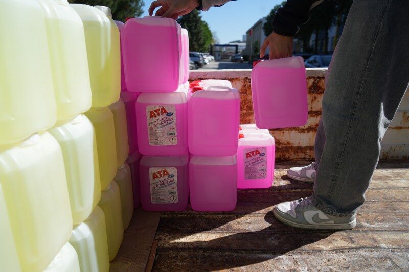 Samsun'da "fabrika gibi lise" olarak bilinen Atakum Mesleki ve Teknik Anadolu Lisesi'nin kimya bölümü temizlik malzemesi üretmeye devam ediyor. Kurumlar yaptıkları anlaşma gereği lise, yıl sonuna kadar 150 ton temizlik malzemesi üretmek için kolları sıvadı. KYK yurtları ve gençlik merkezlerine verilmek için çamaşır suyu, yüzey, temizleyicisi ve sıvı el sabunu gibi temizlik malzemesi üreten lise çalışmalarını sürdürüyor.