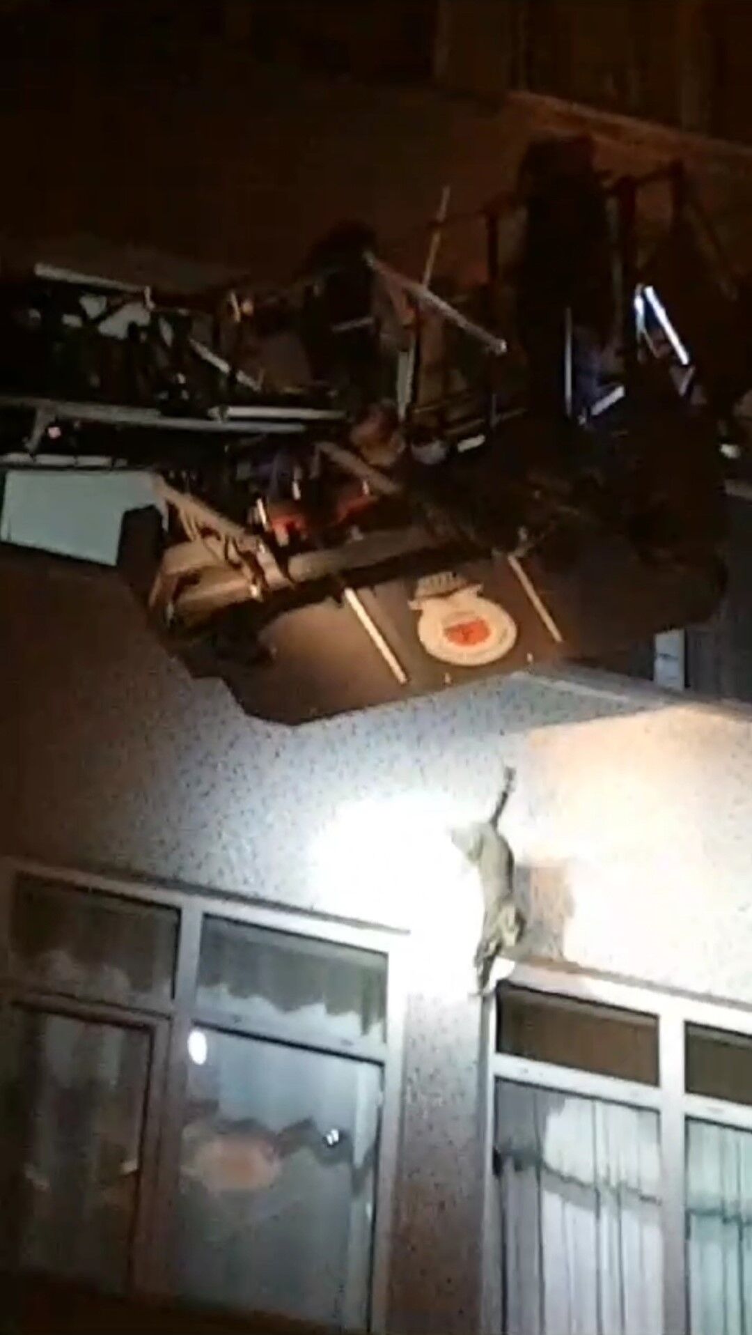 Vatandaşlar 4. kattaki evin pencere kenarında kediyi fark edince itfaiyeden yardım istedi.