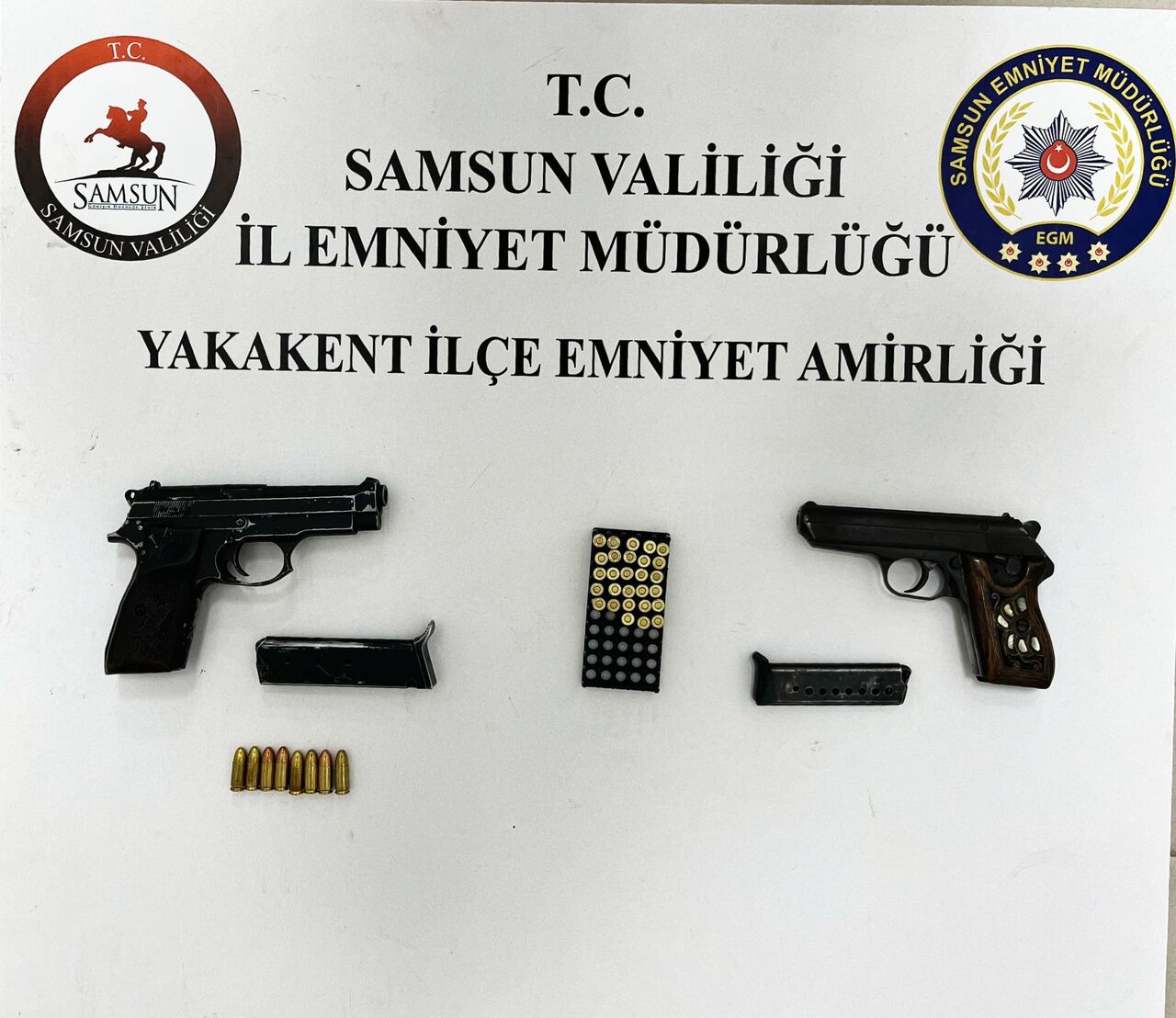 Samsun’un Yakakent ilçesinde gerçekleştirilen “Narko Alan” uygulaması kapsamında durdurulan iki araçta ruhsatsız silah ve fişek ele geçirildi.