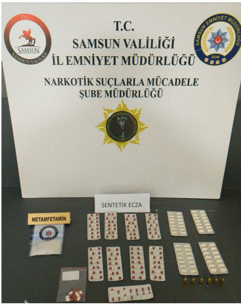 Operasyonlarda; 622 adet sentetik ecza, 57,95 gram sentetik kannabinoid, 30 gram metamfetamin, 1 adet hassas terazi ve 2 adet uyuşturucu madde kullanım aparatı ele geçirildi.